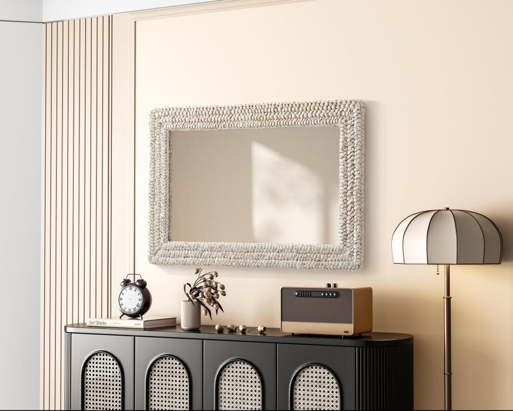 Transform your space with this stunning wall mirror that blends natural charm with functional design. Crafted from MDF, cornhusk, and high-quality mirror, the textured woven frame brings warmth and character to your decor. Whether you're decorating a hallway, living room, or bedroom, this mirror comes in a variety of shapes—including rectangle, round, oval, and arch—along with multiple size options to perfectly suit your needs. Designed for versatility, the mirror features four inset metal hangers, allowing you to mount it either vertically or horizontally with ease. Its reflective surface not only adds a touch of brightness but also creates the illusion of a larger room, enhancing your space. with durable materials and ready-to-hang hardware, this mirror is as practical as it is stylish, making it a must-have piece for any home.