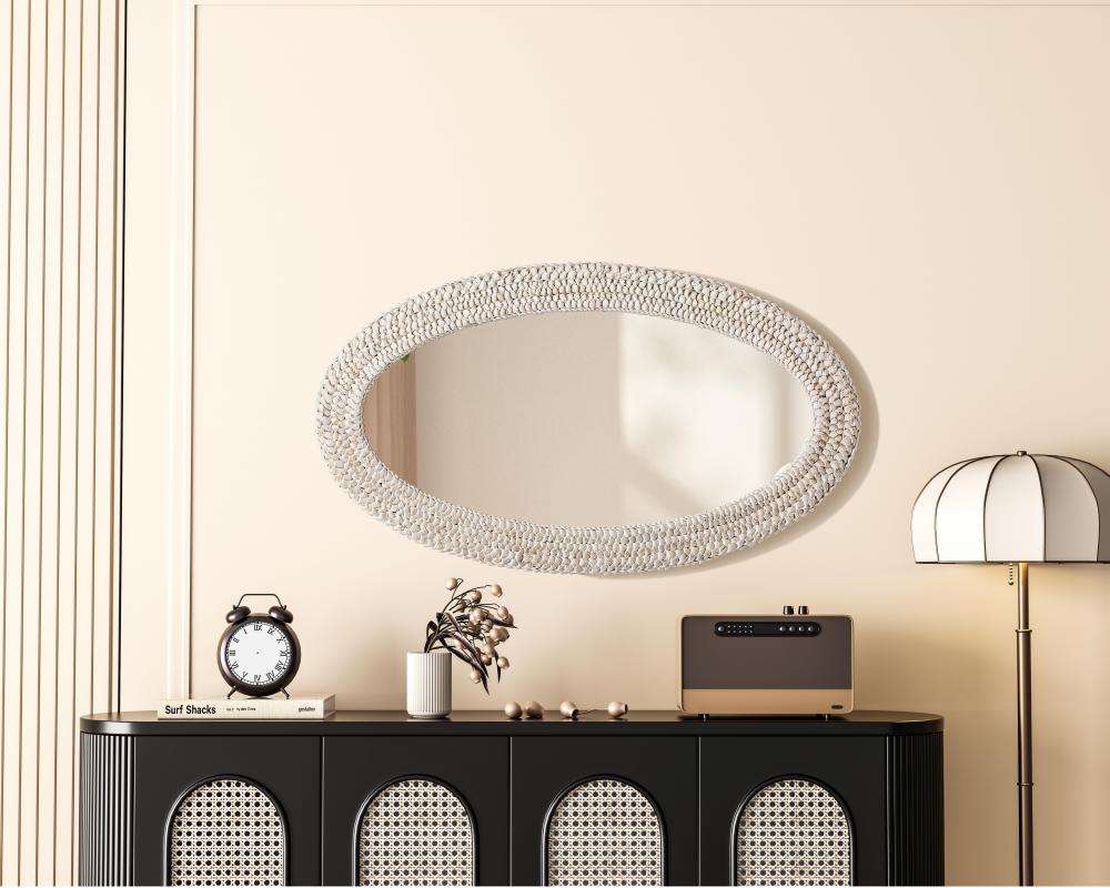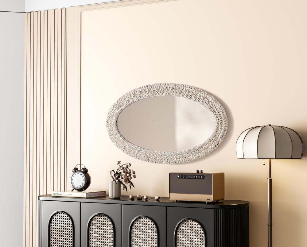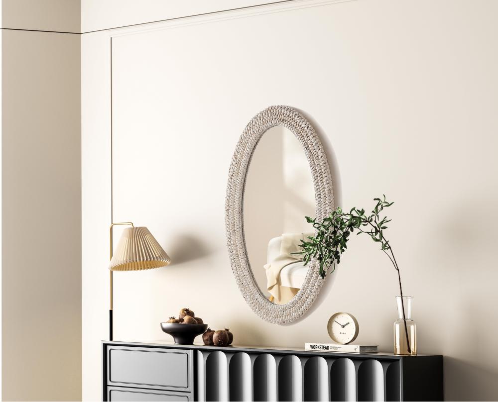 Transform your space with this stunning wall mirror that blends natural charm with functional design. Crafted from MDF, cornhusk, and high-quality mirror, the textured woven frame brings warmth and character to your decor. Whether you're decorating a hallway, living room, or bedroom, this mirror comes in a variety of shapes—including rectangle, round, oval, and arch—along with multiple size options to perfectly suit your needs. Designed for versatility, the mirror features three inset metal hangers, allowing you to mount it either vertically or horizontally with ease. Its reflective surface not only adds a touch of brightness but also creates the illusion of a larger room, enhancing your space. with durable materials and ready-to-hang hardware, this mirror is as practical as it is stylish, making it a must-have piece for any home.
