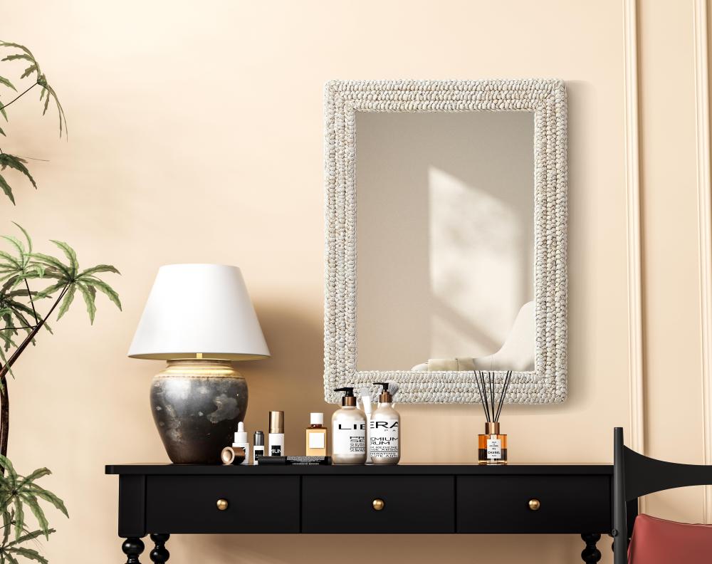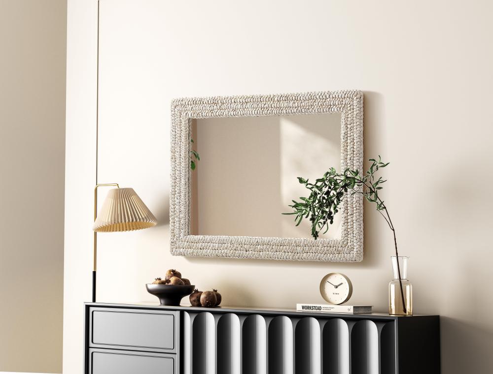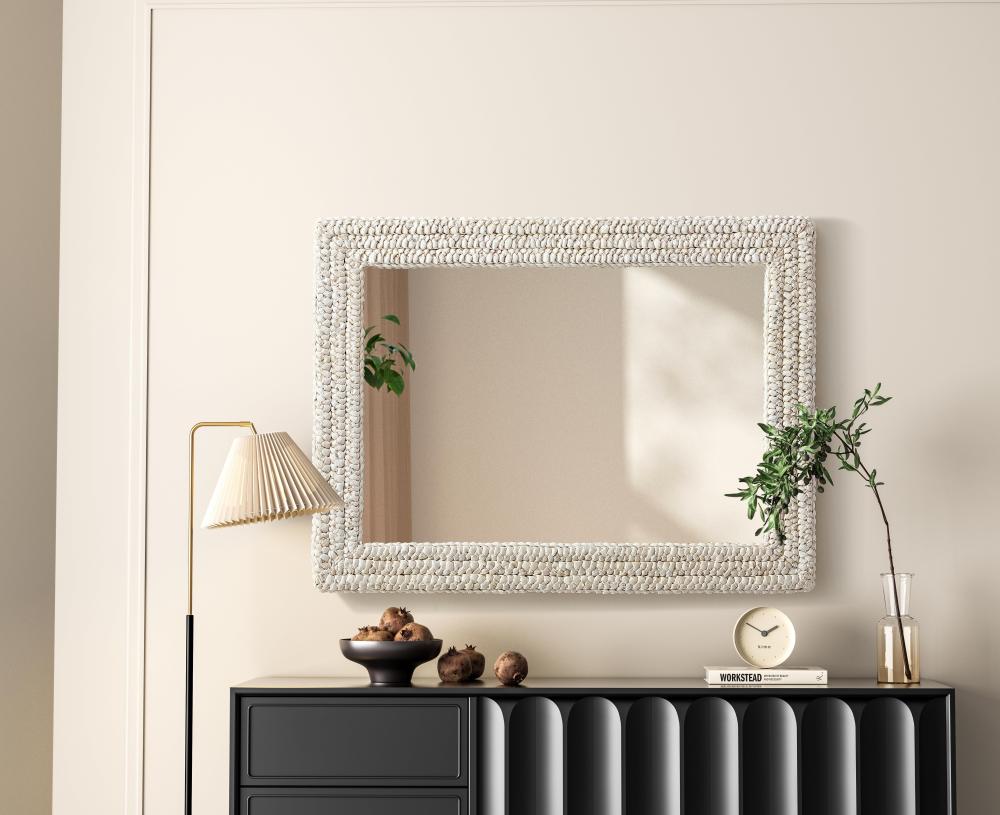 Transform your space with this stunning wall mirror that blends natural charm with functional design. Crafted from MDF, cornhusk, and high-quality mirror, the textured woven frame brings warmth and character to your decor. Whether you're decorating a hallway, living room, or bedroom, this mirror comes in a variety of shapes—including rectangle, round, oval, and arch—along with multiple size options to perfectly suit your needs. Designed for versatility, the mirror features four inset metal hangers, allowing you to mount it either vertically or horizontally with ease. Its reflective surface not only adds a touch of brightness but also creates the illusion of a larger room, enhancing your space. with durable materials and ready-to-hang hardware, this mirror is as practical as it is stylish, making it a must-have piece for any home.