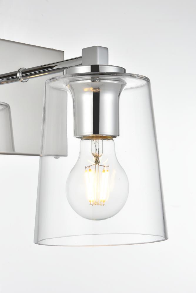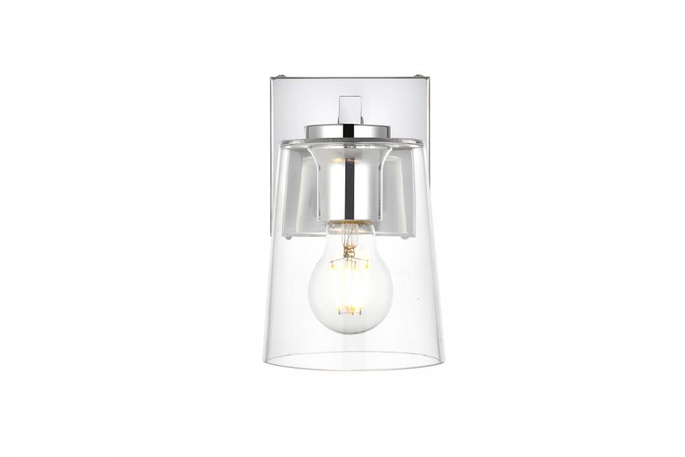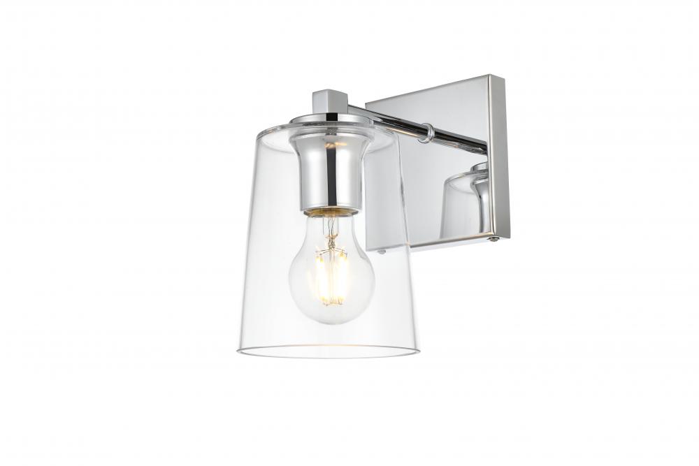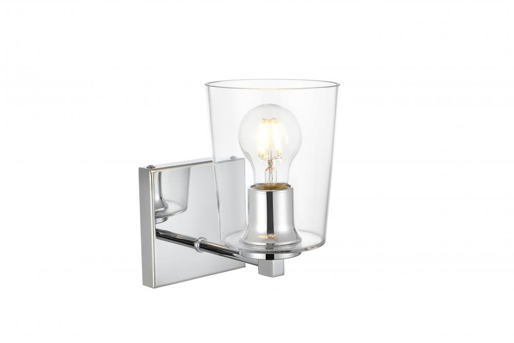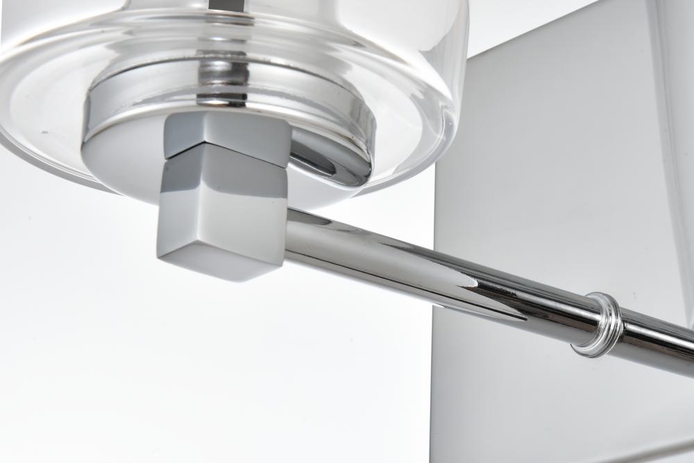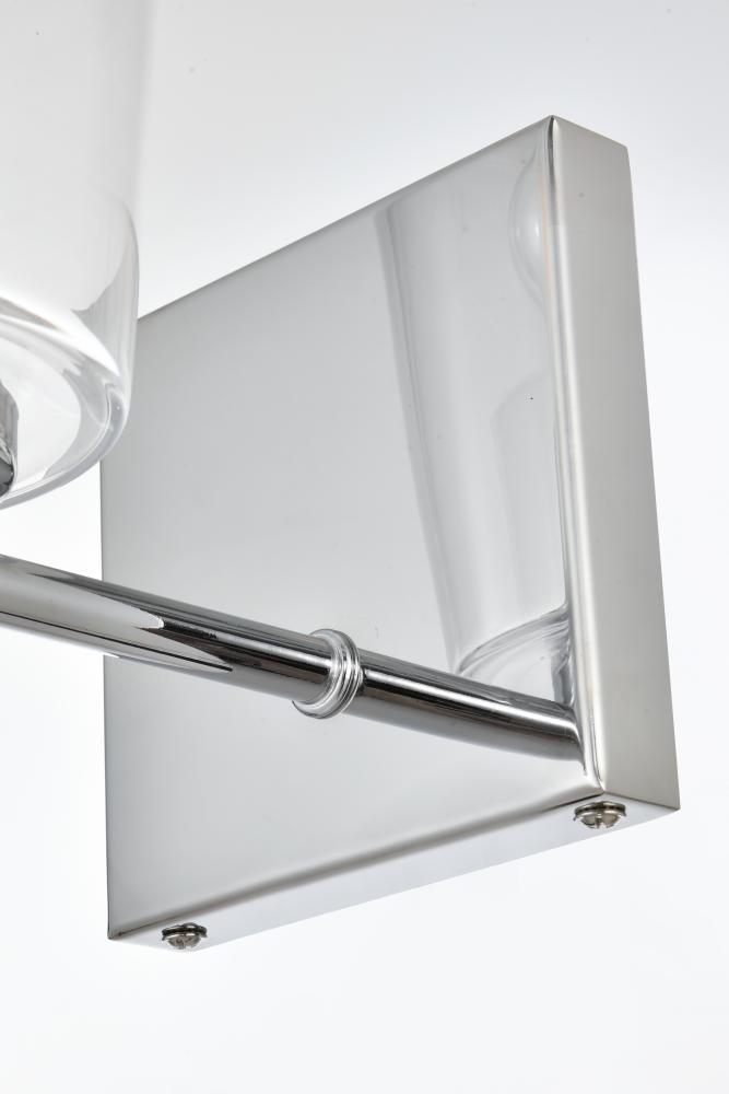 Defined by a sleek metal arm extends to suspend the clear cylinder glass shade. A contemporary stunner, it shows off the straight line details from the backplate and the streamline thin metal arm. Compatible with dimmers, so you'll have the right amount of light in any given time of the day. Completely versatile, you can place this wall light as an uplight or downlight. Rated for use in damp locations, this will work perfectly over a vanity in your bathroom.