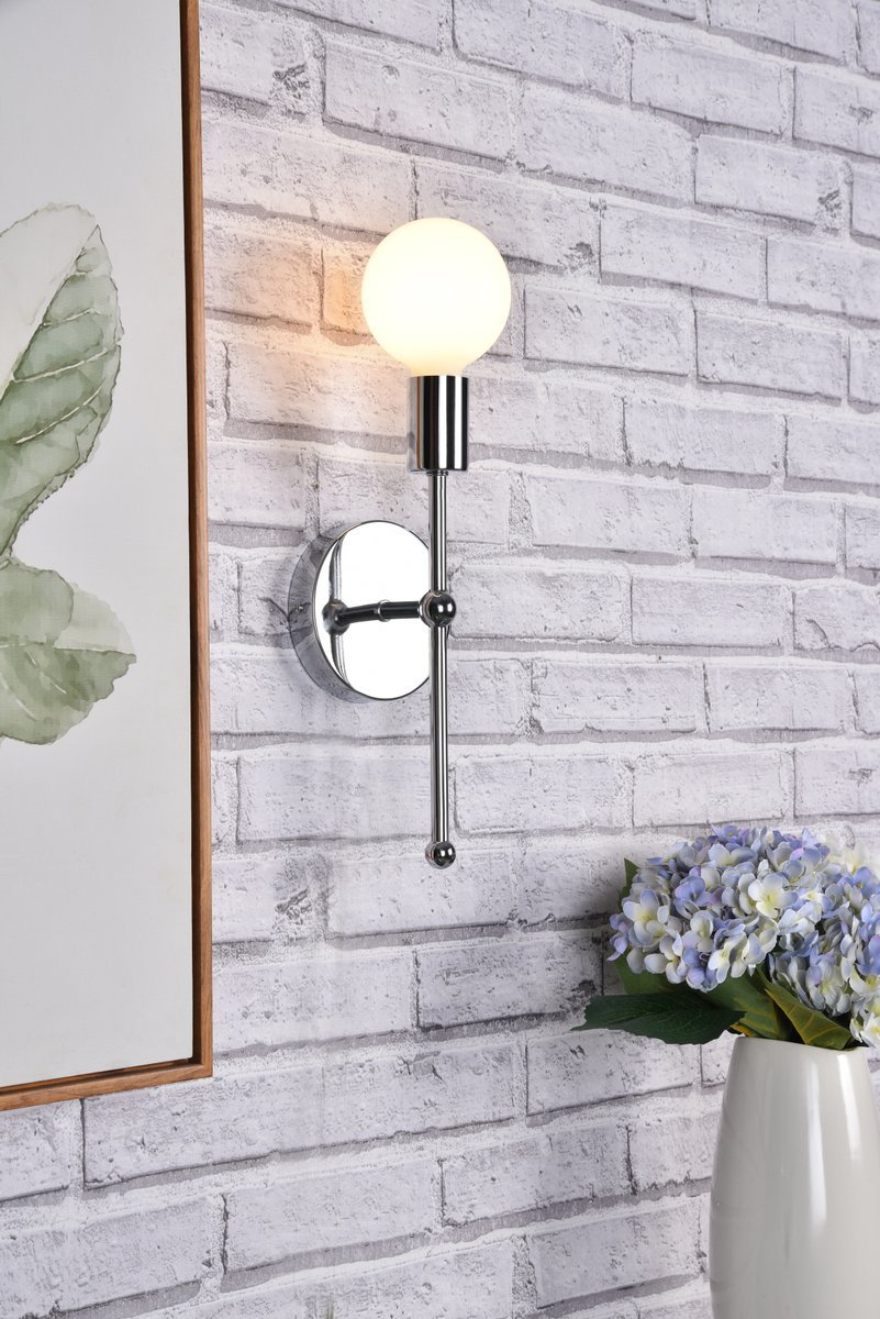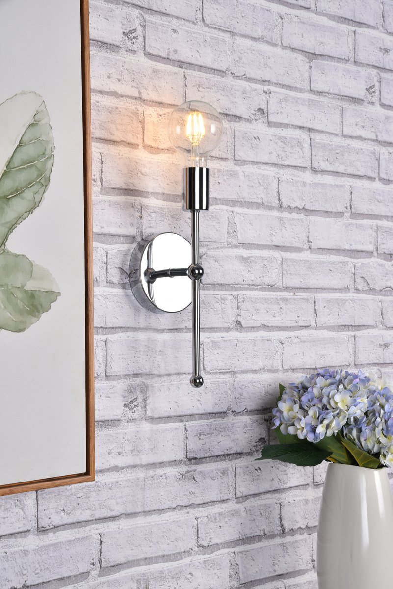 Although small the Keely Collection wall sconce will be sure to pop in any room. It’s linear shape creates a modern torch-like look. Available in black, brass, or chrome finish this piece will bring a unique look to your space. This fixture includes a dimmable feature and requires one E26 socket. Light bulbs not included.
