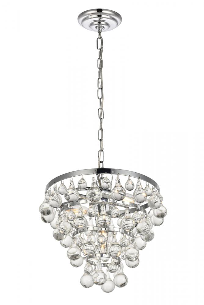 Look to the Kora collection for fascinating pendant lamps that will shimmer in endless variations. The Iron and Crystal fixture features royal-cut clear Crystals of different sizes suspended from interior rings of gleaming Chrome. The etched drop pendant Crystals with swirlingSilver bands give this design a distinctive look. Light from three bulbs (Not provided) creates a marvelous display of ever-changing reflections. Dangling Crystal balls anchor the bowl-shaped fixture and create a focal point of interest. This dazzling light will add glamor to a kitchen, dining room, bedroom, or foyer.