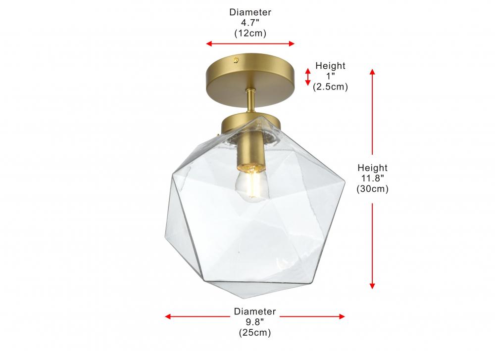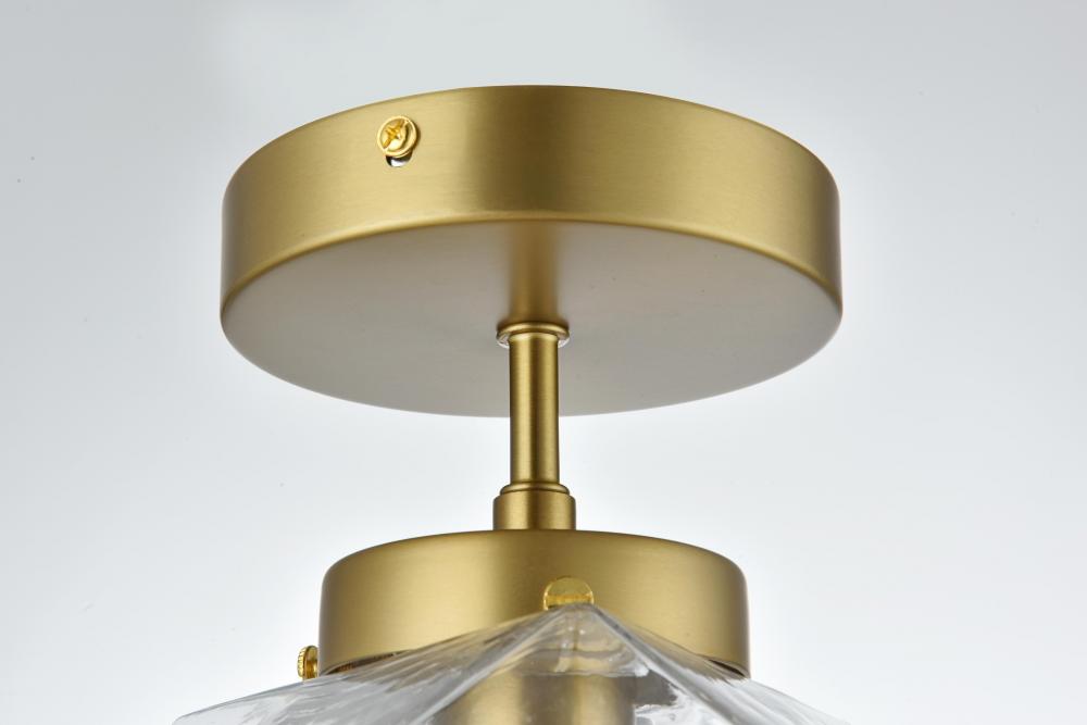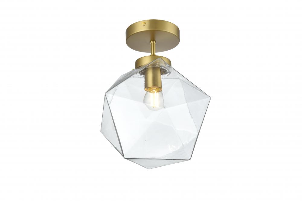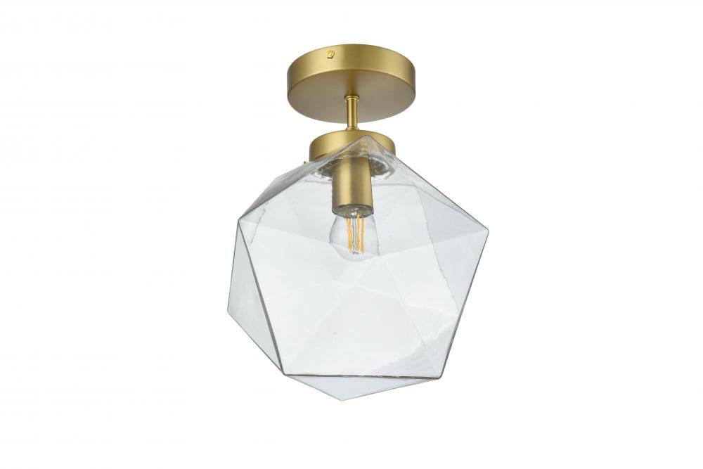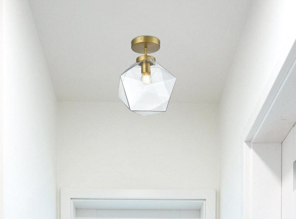 The Lawrence Collection flush mount is the perfect choice if you are looking to add visual interest with functional illumination into the room. The beauty lies in its unique shape and colors. It is available in satin gold, black, brass, or chrome finish with a clear glass shade. This product is dimmable and requires one E26 lamp. Light bulbs not included.