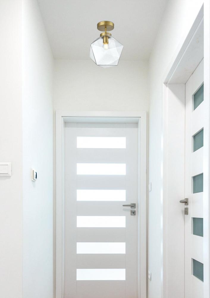 Features a clear glass shade, offering bright, unobstructed light and a clean, modern look.