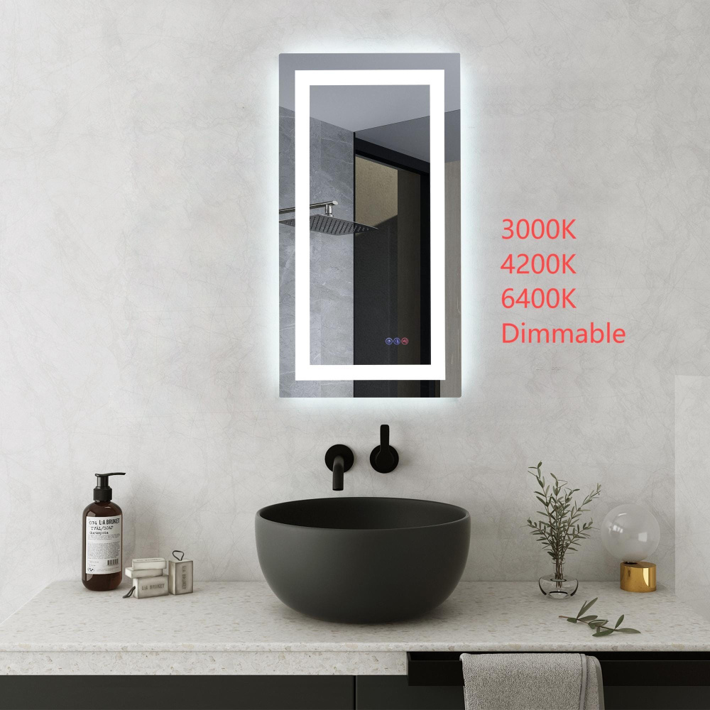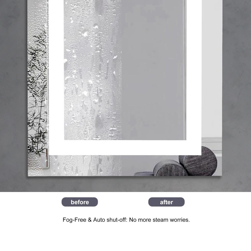 Redefine your daily routine with this ultra-modern LED mirror, designed to offer the perfect blend of style and functionality. Featuring both front and back illumination, this mirror provides a soft yet powerful glow that enhances your space with a luxurious ambiance. The adjustable color temperature (ranging from 3000K to 6400K) allows you to customize the warmth or coolness of your lighting, while the dimmable function lets you create the perfect brightness level. With a 90 CRI rating, this mirror ensures accurate color representation, making it perfect for grooming, makeup application, or daily self-care. The built-in defogger keeps your reflection clear and can be turned on or off at your convenience. Thanks to the touch sensor controls, adjusting your mirror's settings is effortless, and the memory function saves your last preferred settings for a seamless experience. Designed for versatile installation, this mirror can be hung vertically or horizontally using the included French cleats, making it a stunning and adaptable addition to any bathroom or vanity. It can be hardwired or connected to a wall switch for your convenience. Elevate your space with a mirror that not only reflects your image but also enhances your everyday routine with smart, modern lighting.