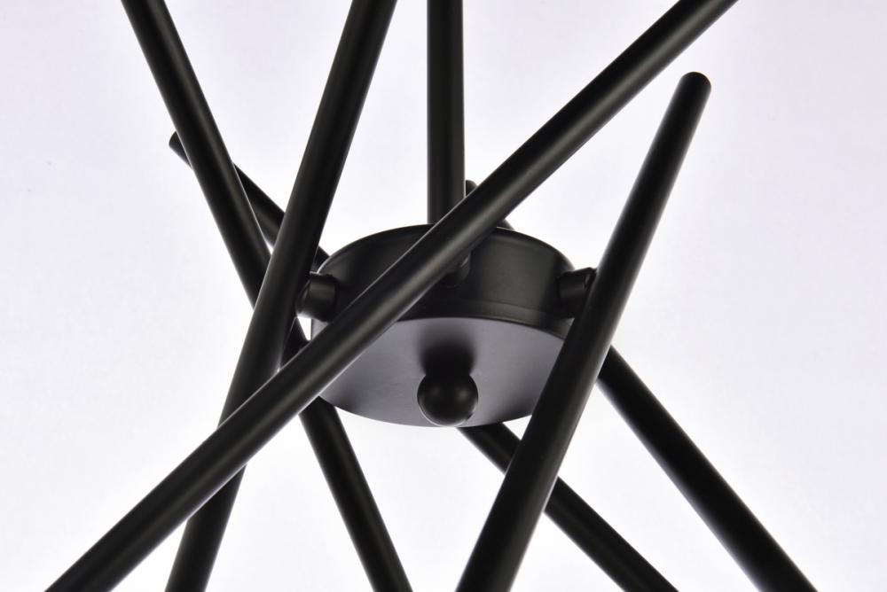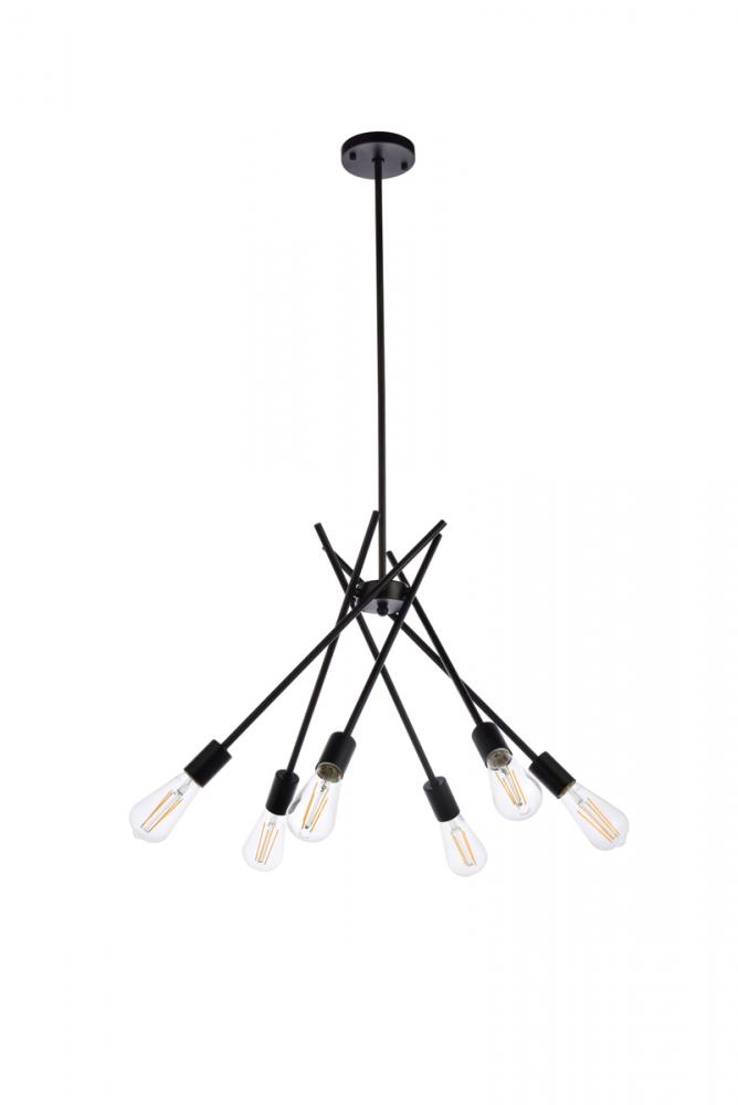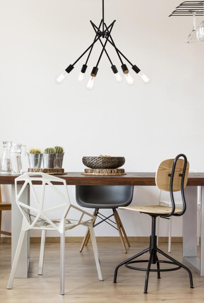 Greet guests with a warm and welcoming glow in the entryway or dress up your dining room for an upcoming dinner party with this eye-catching chandelier. Sure to make a statement in any setting, it is a metal frame takes on a sputnik-inspired silhouette with bursting rays of downward lighting. Six lights are distributed throughout, each exposed to create an even gleam. Installation is required for this hardwired dimmable fixture. Rods are adjustable to the desired height.