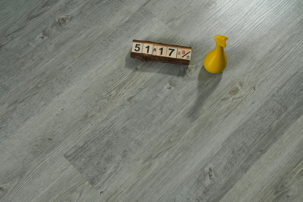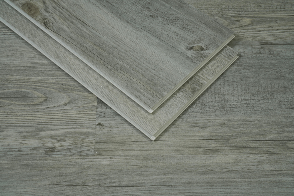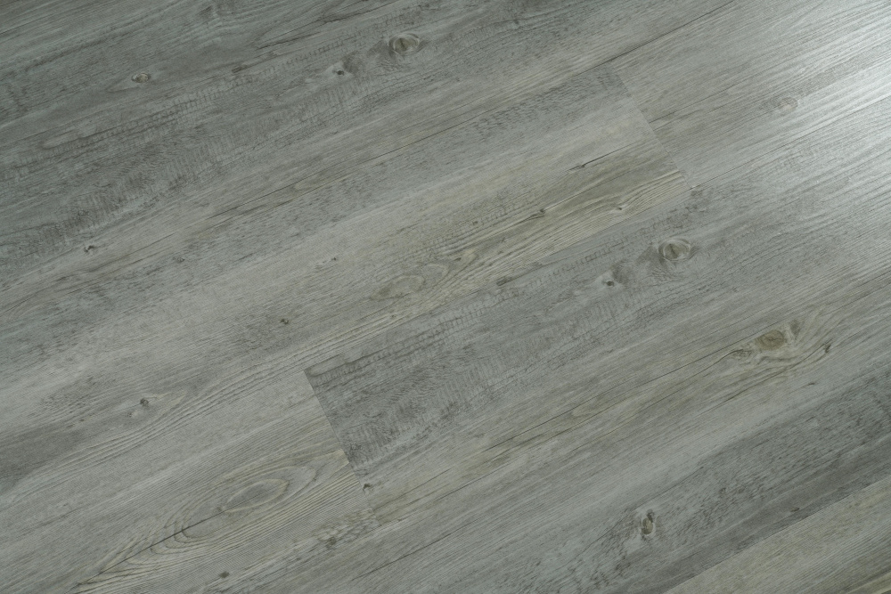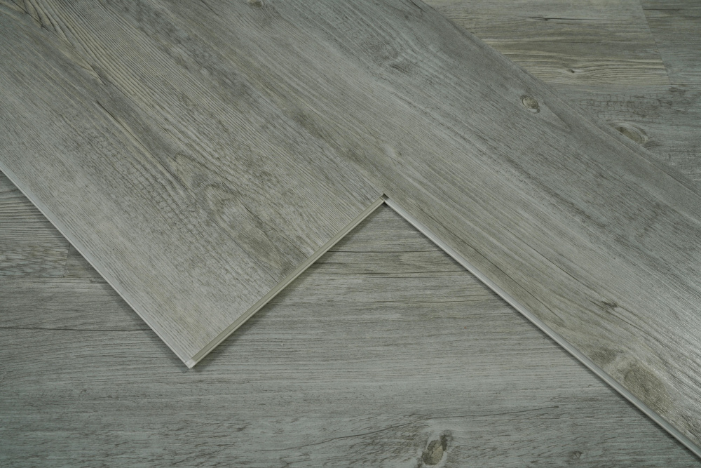 Elevate your space with our premium SPC flooring that combines a sophisticated gray wood grain pattern with advanced 12 mil wear layer technology, 70% PVC construction.