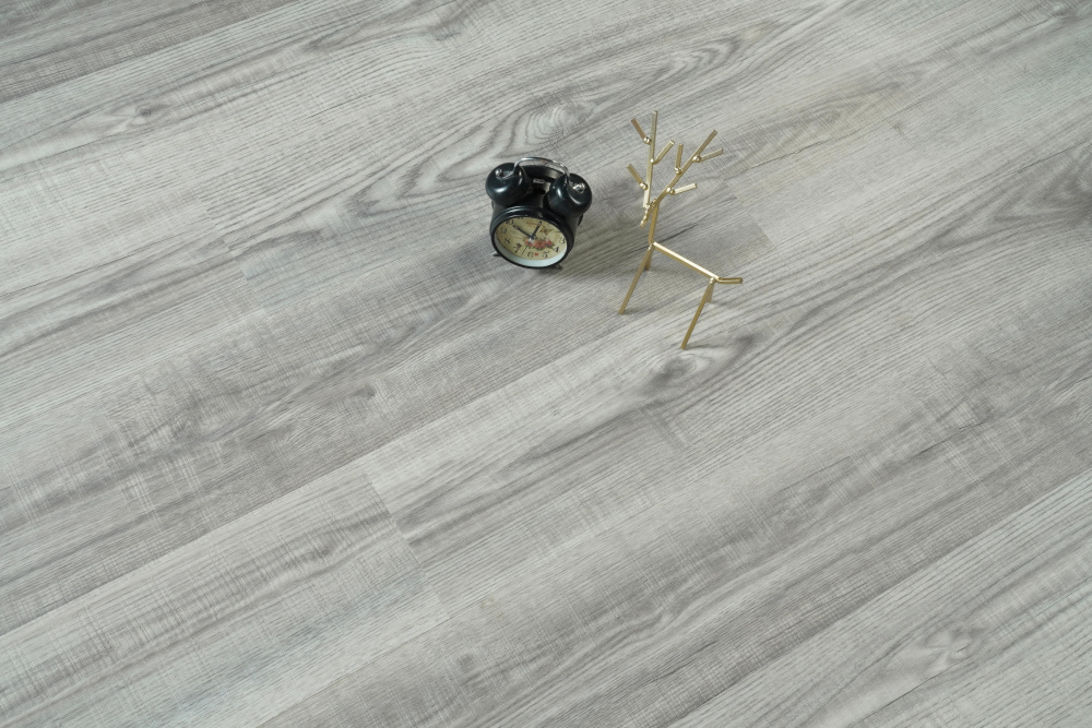 The soft grey finish of this luxury vinyl plank flooring exudes a modern yet timeless appeal, making it a perfect fit for both contemporary and rustic interiors.