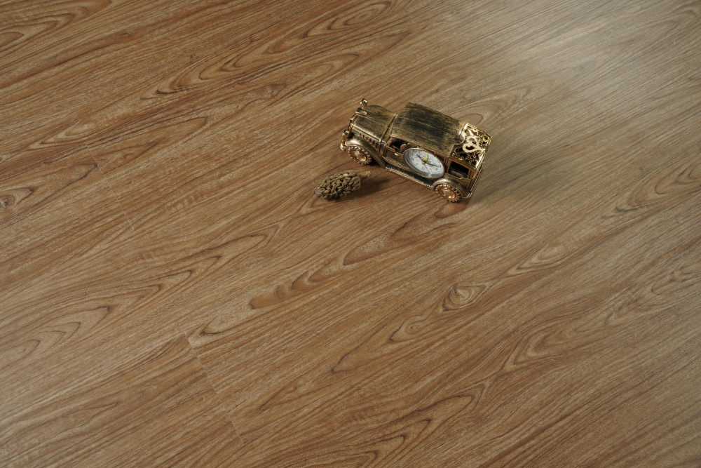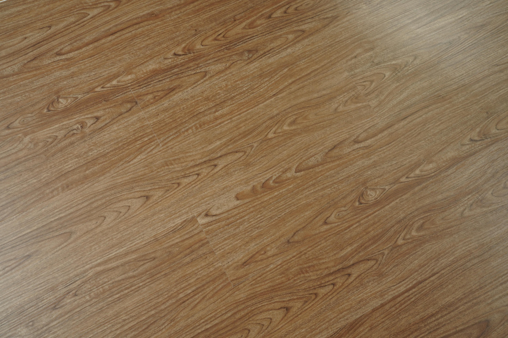 A warm, golden-toned wood finish with flowing grain patterns, bringing a natural, inviting ambiance to any space while offering the durability of modern flooring.