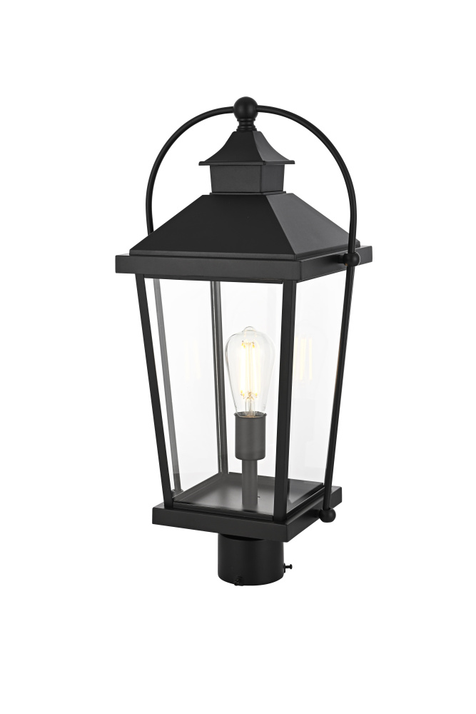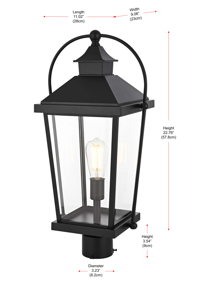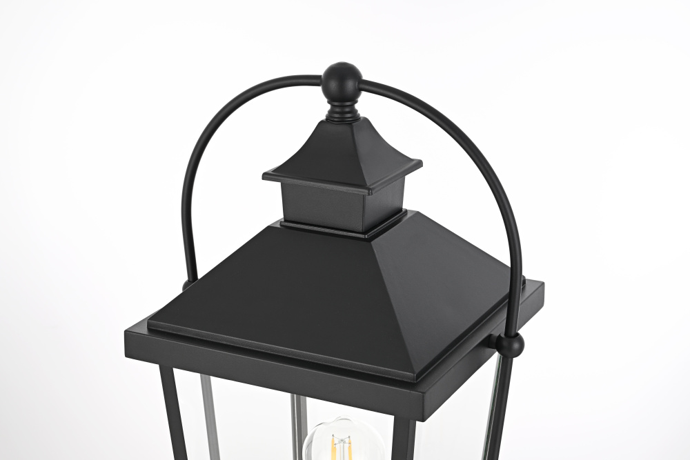 This post light brings a classic lantern silhouette to outdoor spaces, blending traditional design with modern functionality. The tapered rectangular frame, topped with a pitched roof and curved side supports, creates a distinctive, old-world charm suited for both historic and contemporary homes. Made from iron and aluminum, the sturdy metal frame ensures durability, while the clear glass panels allow maximum light output, making this fixture both decorative and functional. Designed to fit standard 3.23-inch post light poles (pole not included), it offers flexibility for placement in driveways, pathways, and garden landscapes. This fixture supports a medium-base E26 light bulb (not included) and is dimmable, allowing for adjustable brightness. ETL Wet Rated for outdoor durability, this post light is built to withstand the elements while enhancing exterior spaces with a structured and timeless presence. Built with marine-grade, corrosion-resistant aluminum, this sconce withstands coastal conditions for long-lasting durability.