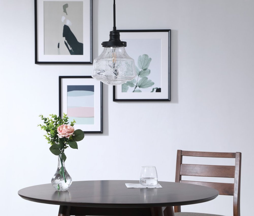 The Lyle Collection is a stunningly functional, yet simplistically lovely light. The geometric shade creates a clean form that will fit well in any space, large or small. Its versatile simplicity allows for this fixture to blend in well with the rest of your room, while still maintaining its own bright personality. Hanging from an adjustable black cord, it'll always be the perfect height for your dining room table or study space. Available in a black, chrome, or brass finish, and a clear bubble or frosted white shade, let this pendant lamp illuminate your room (light bulbs not included).