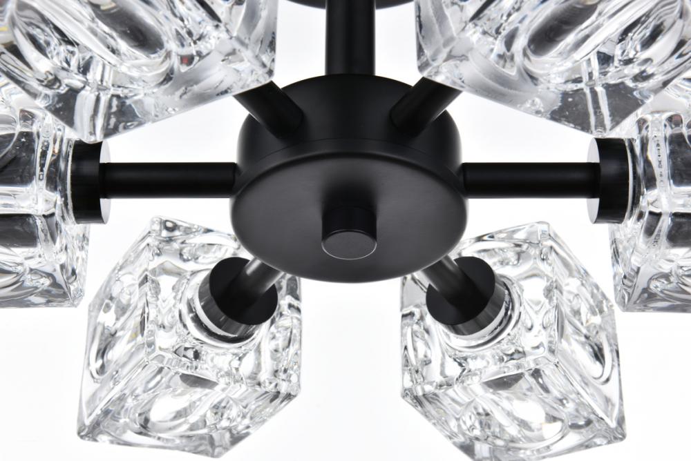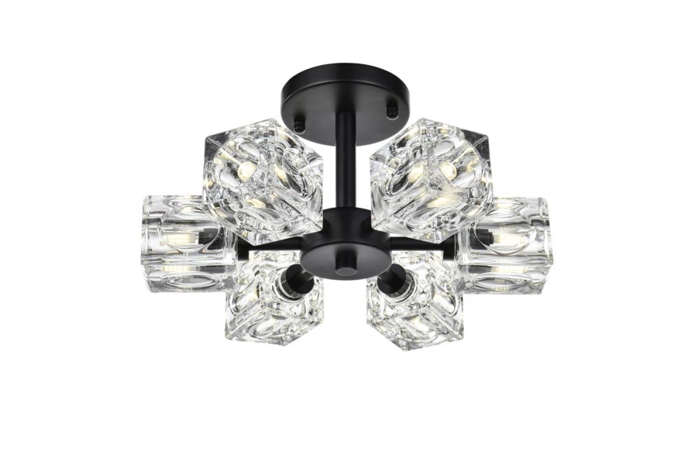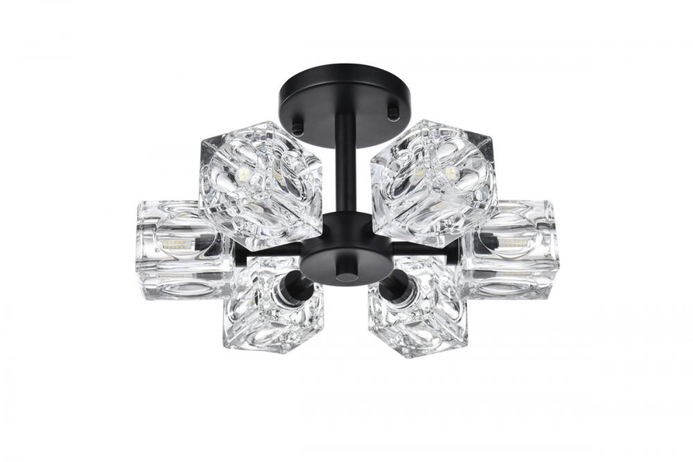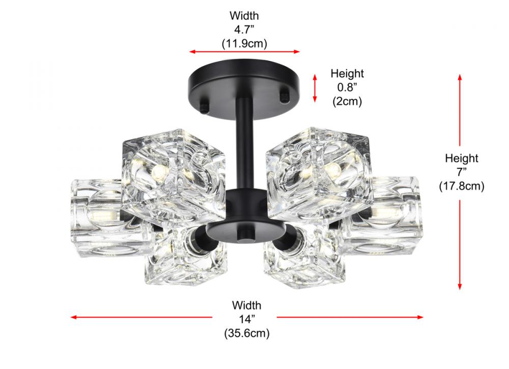 Effortlessly elegant, our Lyra 14-inch flush mount redefines your space, projecting six lights each adorned with distinctive dimpled square glass for a dynamic touch. Crafted with durability in mind, the iron base adds a hint of industrial elegance. Its flush design hugs the ceiling, combining style with space-saving practicality. Enjoy easy assembly and a 360-degree beam spread, casting warm and inviting light throughout your space. Illuminate with Lyra's timeless radiance.