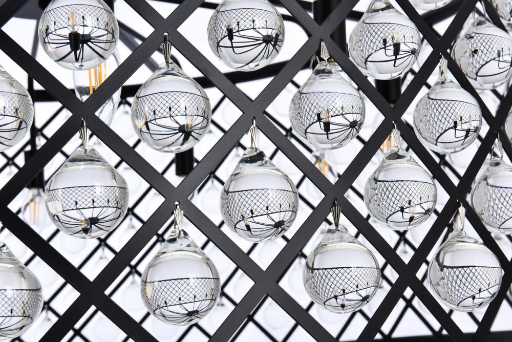 Modern simplicity meets organic beauty in the breathtakingly unique Madison collection. Hand-polished, smooth clear crystal spheres shimmer like dewdrops in a circular forged-iron grid with a golden-iron, mocha-brown, or polished-nickel finish. These airy pendant lamps will brighten up a kitchen, dining room, foyer, or stairwell in an explosion of reflected light.