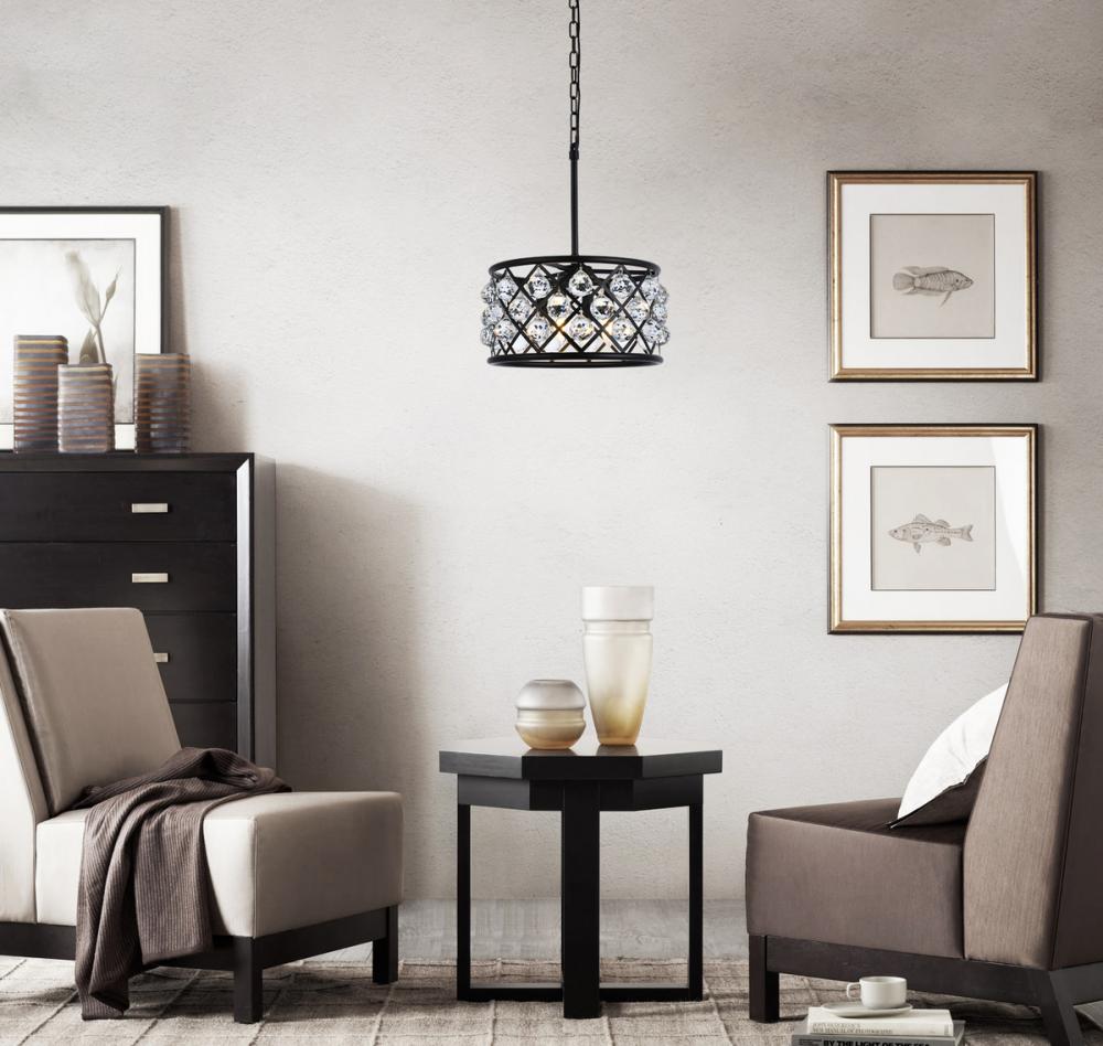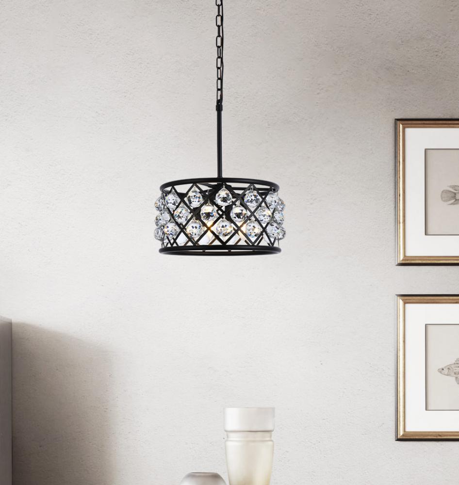 Elegant 1213D12MB/RC - Madison 3 light Matte Black Pendant Clear Royal Cut Crystal