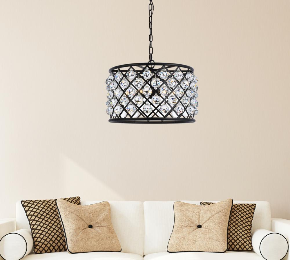 Modern simplicity meets organic beauty in the breathtakingly unique Madison collection. Hand-polished, multifaceted clear, golden-teak, or Silver-shade crystal spheres shimmer like dewdrops in a circular forged-iron grid with a golden-iron, Matte Black, or polished-nickel finish. These airy pendant lamps will brighten up a kitchen, dining room, foyer, or stairwell in an explosion of reflected light.