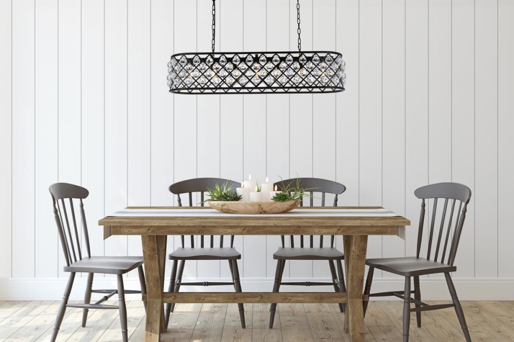 Modern simplicity meets organic beauty in the breathtakingly unique Madison collection. Hand-polished, multifaceted clear, golden-teak, or Silver-shade crystal spheres shimmer like dewdrops in an oblong forged-iron grid with a golden-iron, Matte Black, or polished-nickel finish. These airy chandeliers will brighten up a kitchen, dining room, foyer, or stairwell in an explosion of reflected light.