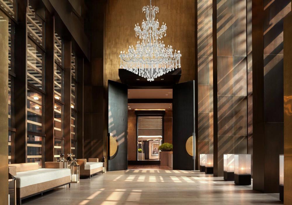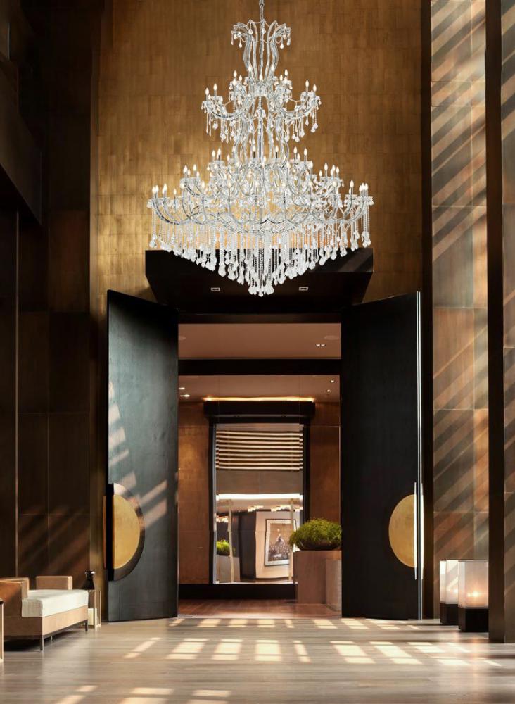 Hundreds of clear royal-cut crystal strands arch and dangle