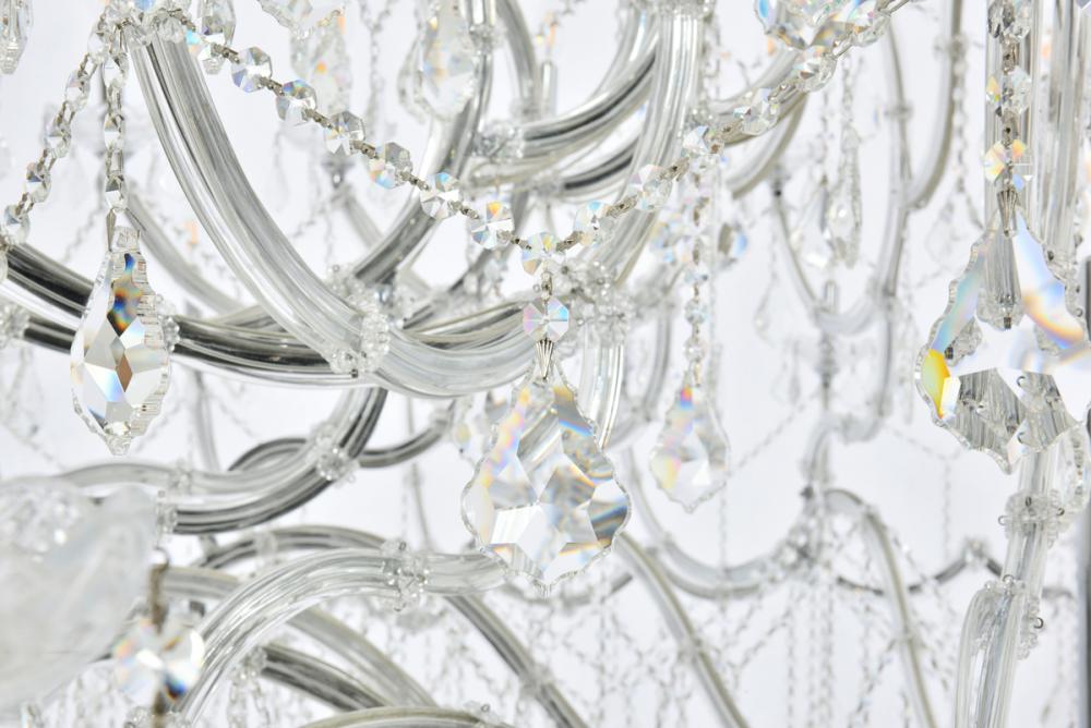 A heavenly high point to your home, Maria Theresa collection pendant lamps are ablaze with hundreds of resplendent crystals. Copious strands of sparkling clear or crystals dangle from elaborate tiers of glass-coated steel arms in chrome finish. An imperial favorite for the stairwell, dining room, or living room.