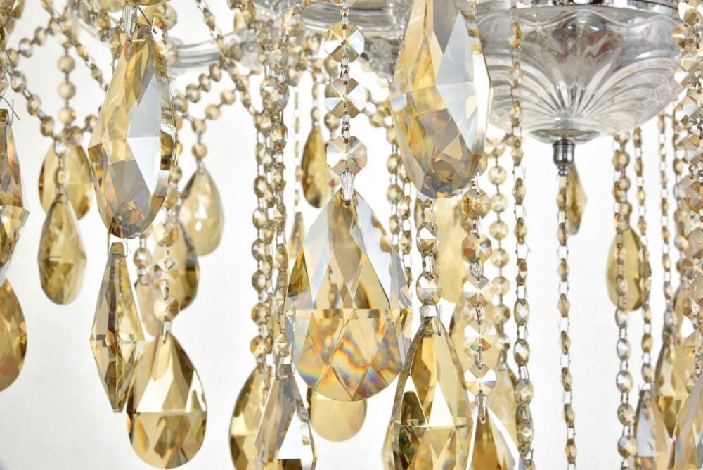 Maria Theresa 84 light Chrome Chandelier with Golden Teak tear drop crystals Golden Teak