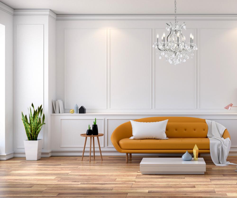 A heavenly high point to your home, Maria Theresa collection pendant lamps are ablaze with hundreds of resplendent crystals. Copious strands of sparkling clear or golden-teak crystals dangle from elaborate tiers of glass-coated steel arms in your choice of a chrome, gold, golden-teak, white, or black finish. An imperial favorite for the stairwell, dining room, or living room.