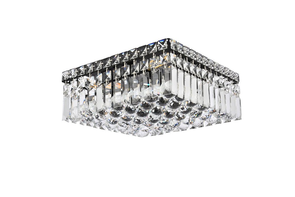 A riot of shapes and textures, Maxime collection flush mounts sparkle in a mosaic of crystal tiles. Square and rectangular precision-cut crystals form the flamboyant exterior while faceted crystal balls create a bubbled effect for light to shine through beneath. Available in a black or chrome finish with clear crystals, these lamps are a luxurious addition to a kitchen, stairwell, foyer, or living room.