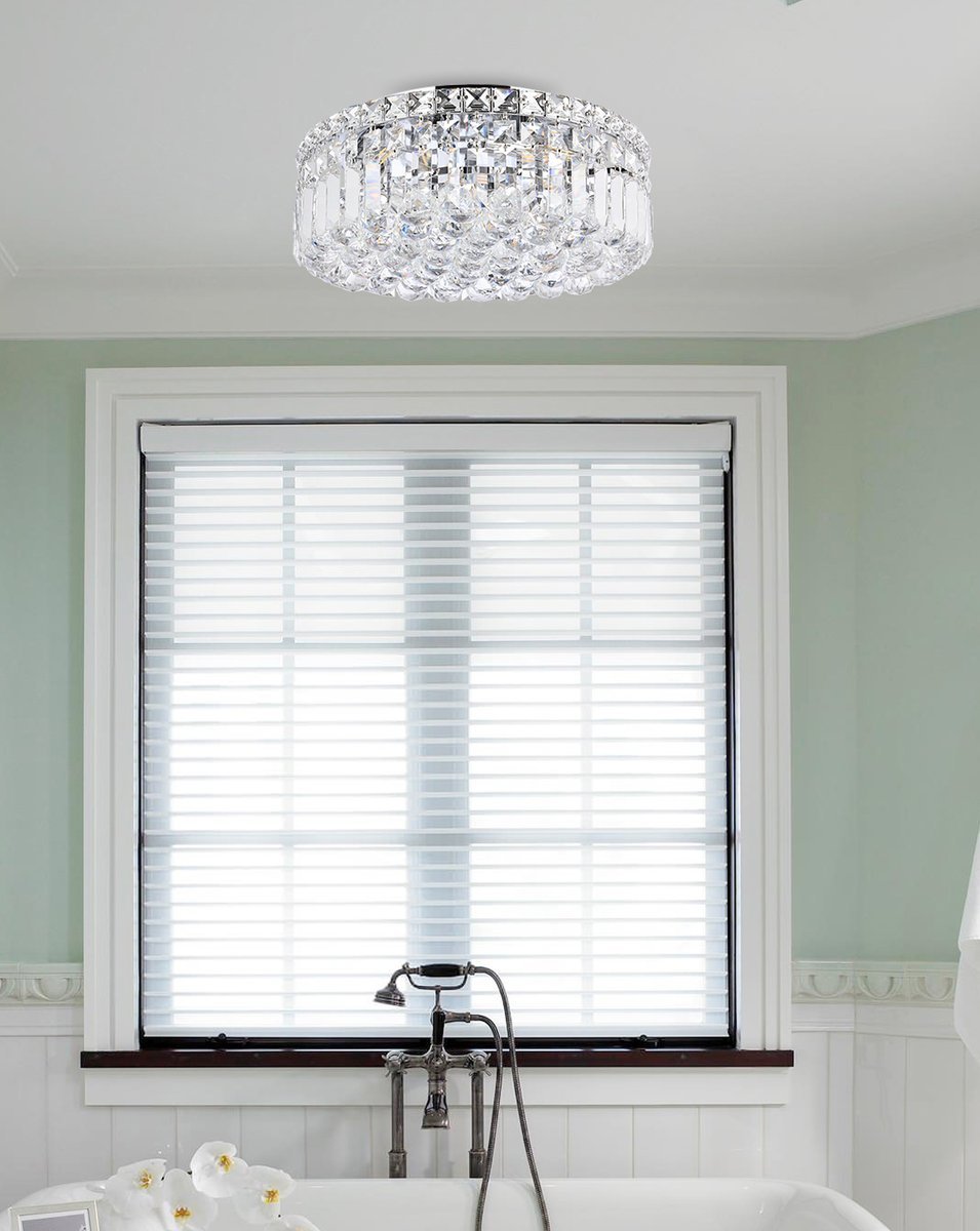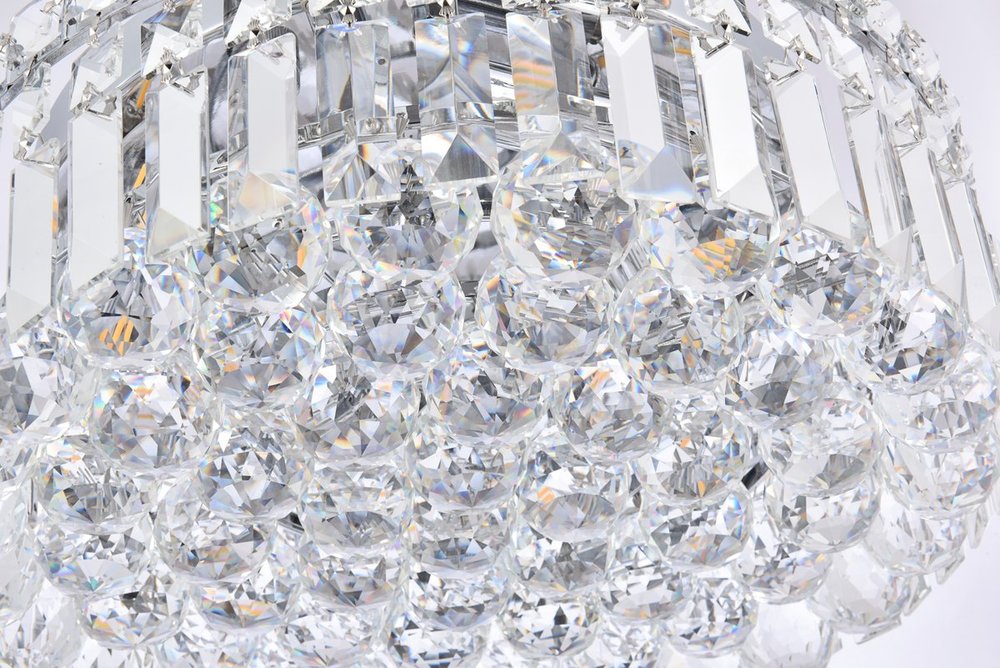 A riot of shapes and textures, Maxime collection flush mounts sparkle in a mosaic of crystal tiles. Square and rectangular precision-cut crystals form the flamboyant exterior while faceted crystal balls create a bubbled effect for light to shine through beneath. Available in a chrome finish with clear crystals, these lamps are a luxurious addition to a kitchen, stairwell, foyer, or living room.