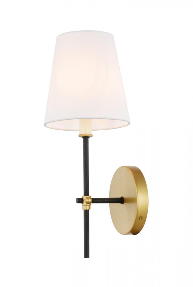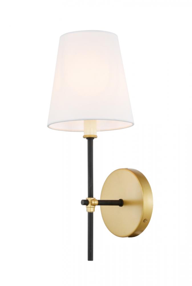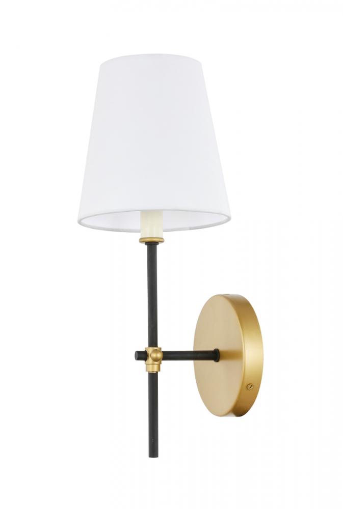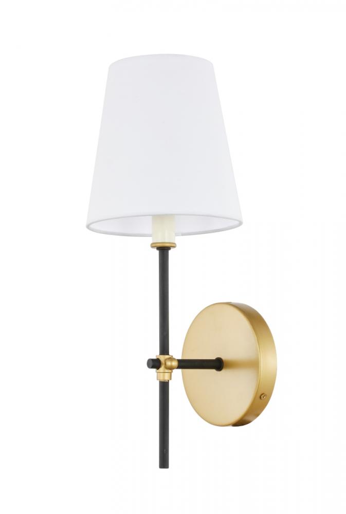 The Mel Collection of wall lamps adds refined simplicity to your life. Its unassuming design is versatile enough to blend in with any décor, but the sleek rod and clean linen shade adds contemporary style and elegance. Adding a breath of fresh air, this wall lamp, available in a brass or two-toned brass and black finish, is the perfect addition to your bathroom or entryway.