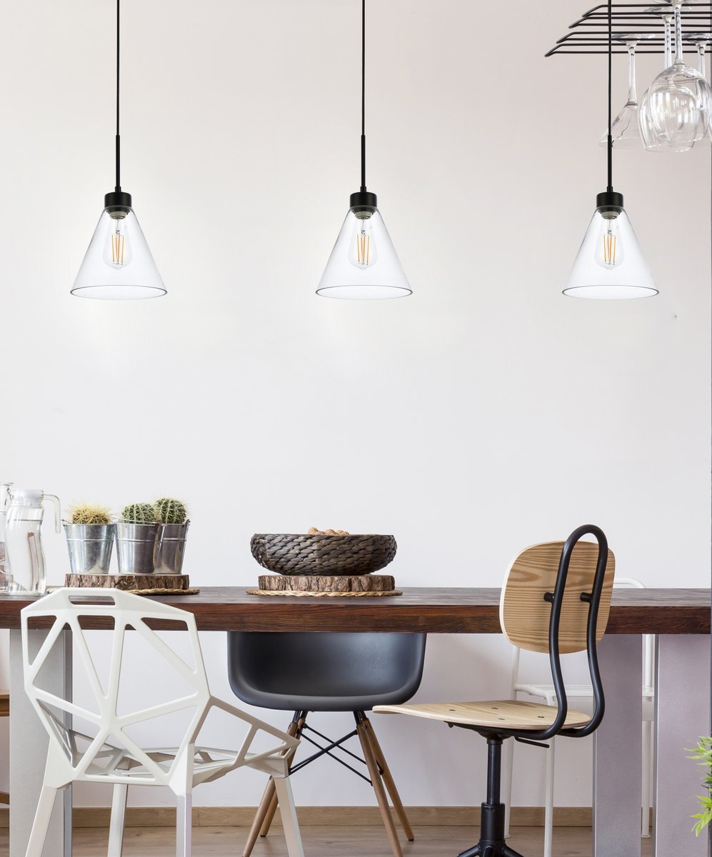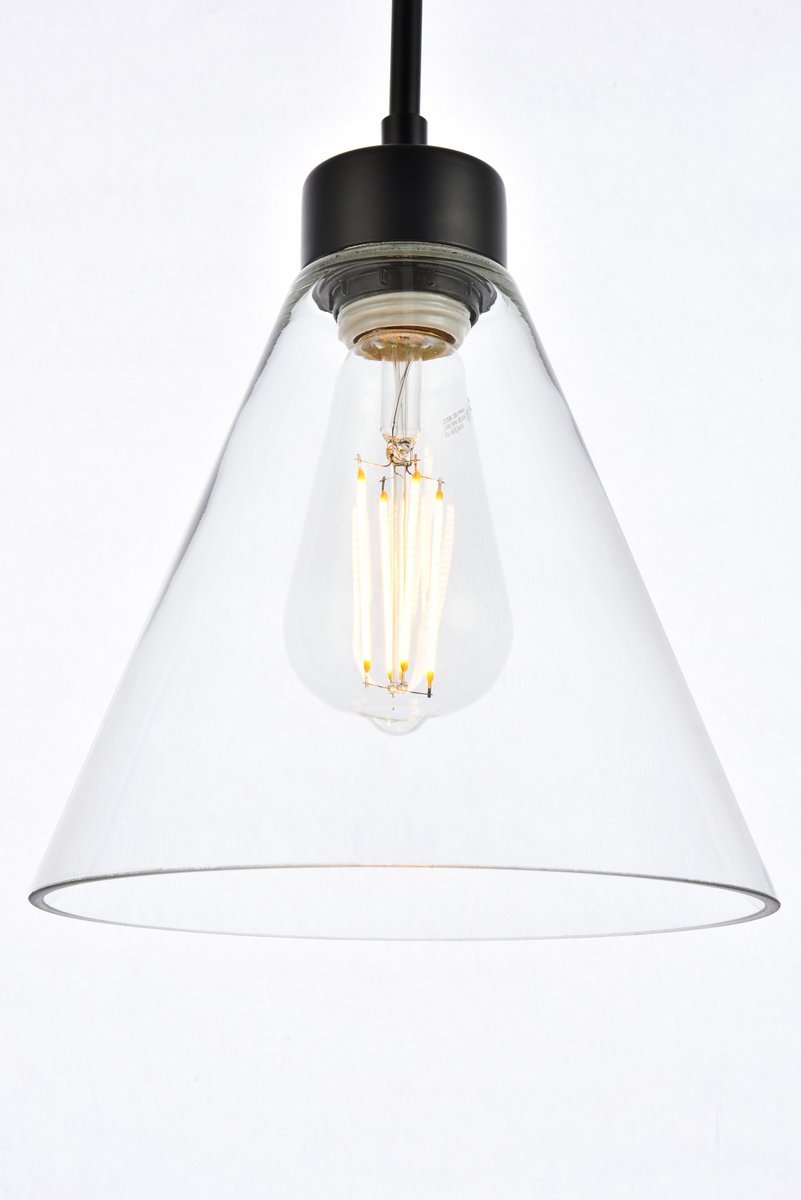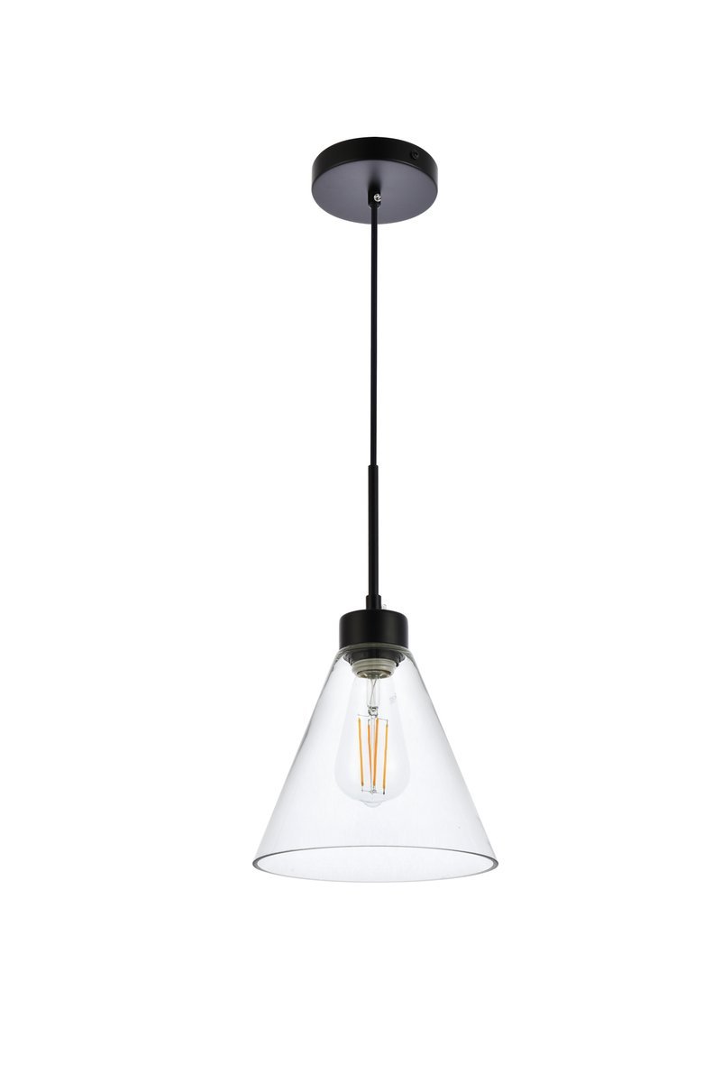 The Mera Collection pendant light is a refined accent piece to have. The cone shaped glass shade and straight cord will fit seamlessly to any room. Available in a black or brass finish this light will illuminate its surrounding. This product is dimmable, requires one E26 socket. Light bulbs not included.