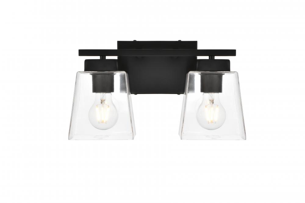 Defined by a sleek metal arm extends to suspend the clear bell glass shade. A contemporary stunner, it shows off the straight line details from the backplate and the streamline thin metal arm. Compatible with dimmers, so you'll have the right amount of light in any given time of the day. Completely versatile, you can place this wall light as an uplight or downlight. Rated for use in damp locations, this will work perfectly over a vanity in your bathroom.