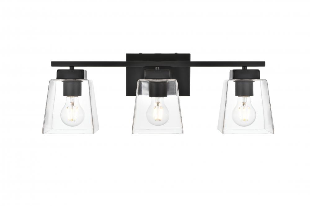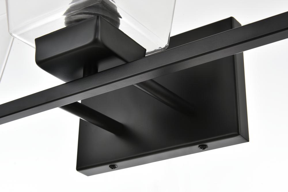 Defined by a sleek metal arm extends to suspend the clear bell glass shade. A contemporary stunner, it shows off the straight line details from the backplate and the streamline thin metal arm. Compatible with dimmers, so you'll have the right amount of light in any given time of the day. Completely versatile, you can place this wall light as an uplight or downlight. Rated for use in damp locations, this will work perfectly over a vanity in your bathroom.