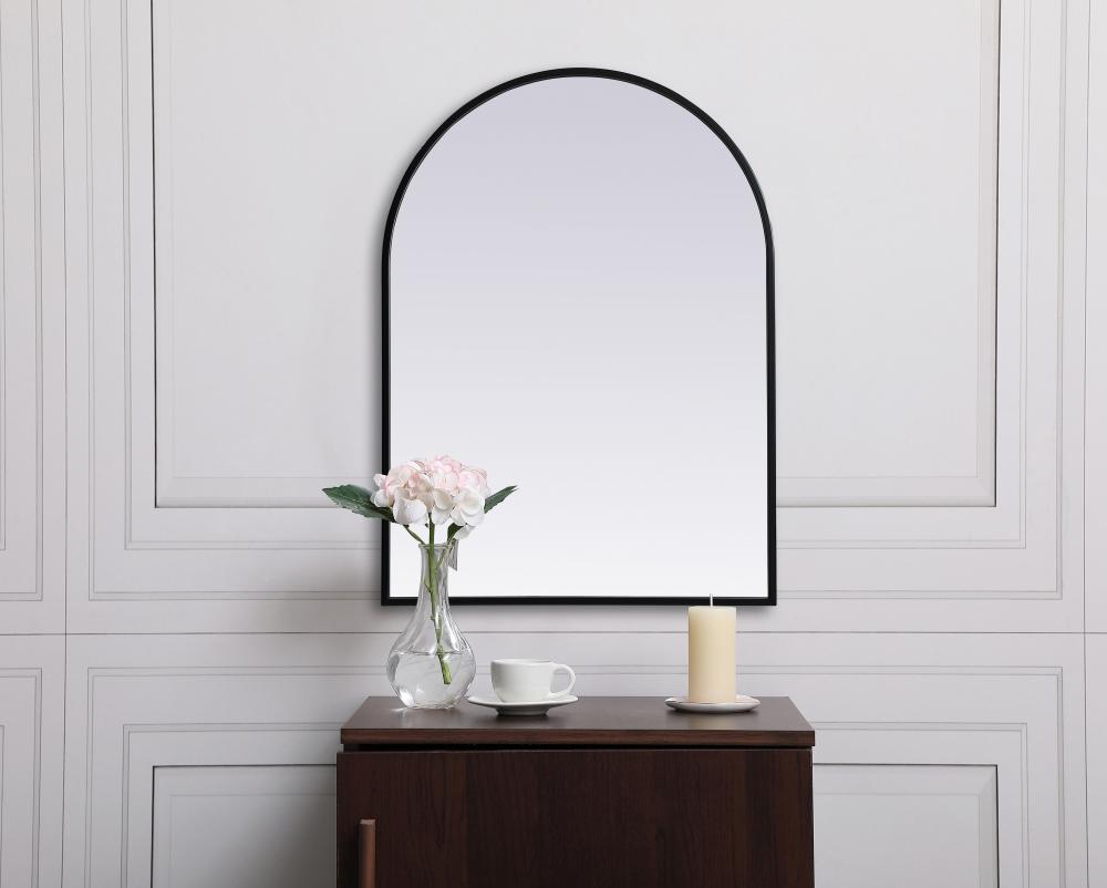 Instantly open up any space in your home with this minimalist wall-mounted mirror. Crafted of metal, this mirror strikes a round silhouette. Its slender, clean-lined frame sports a classic finish, while the glass mirror within features a flat, for a brilliant reflection, letting the light bounce off to expand your space. Designed in an arch shape, this metal-frame mirror showcases in the three available satin finishes in black, brass, or silver. Mount this work of art in any room of your choice for added visual impact.