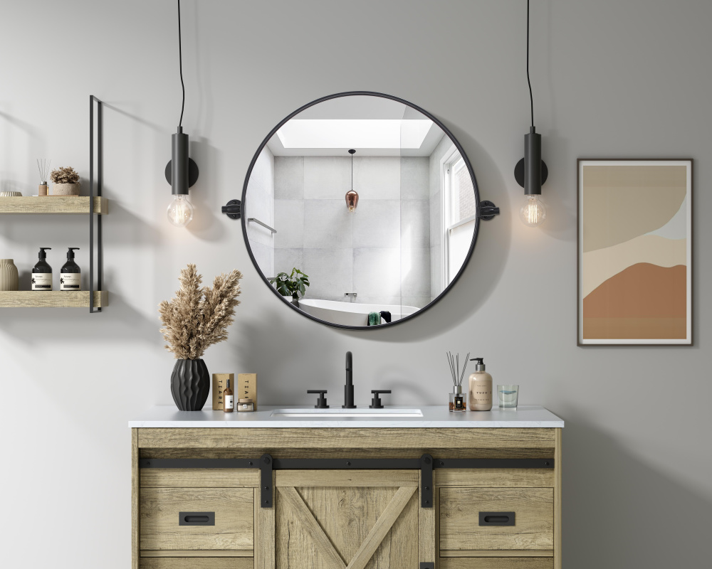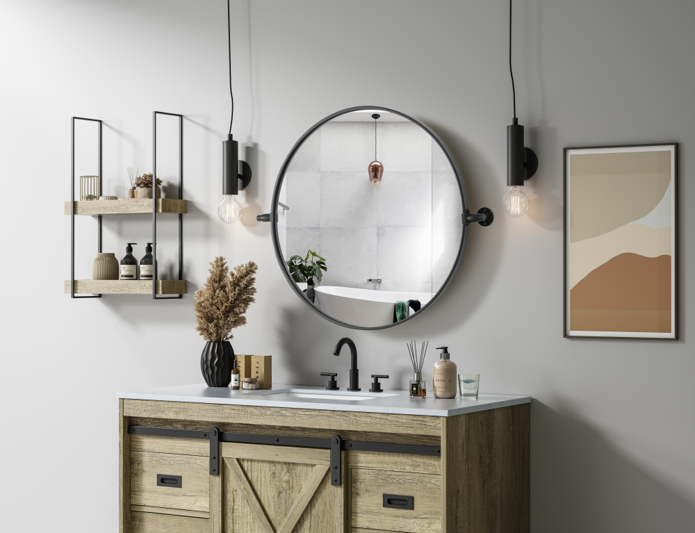With an adjustable 8-degree pivot, this stylish round mirror adapts to your perfect angle, offering both beauty and function.