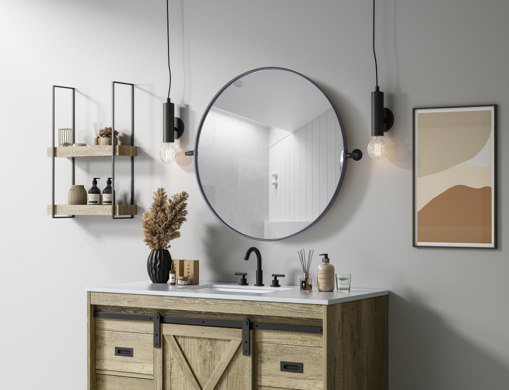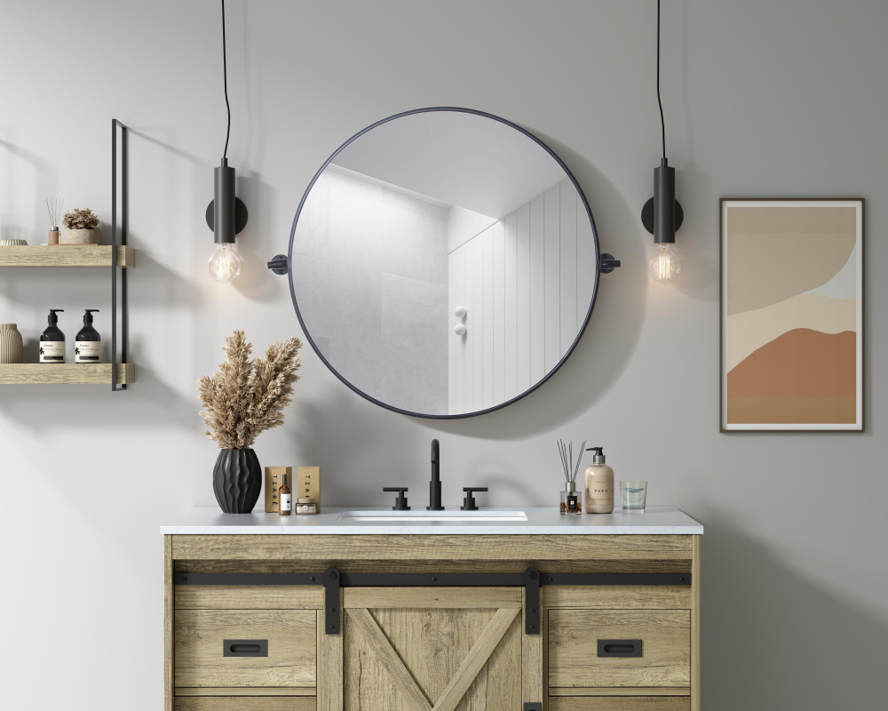 With an adjustable 8-degree pivot, this stylish round mirror adapts to your perfect angle, offering both beauty and function.