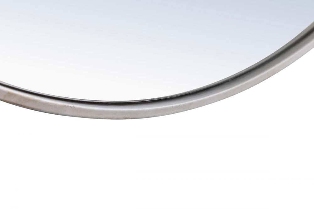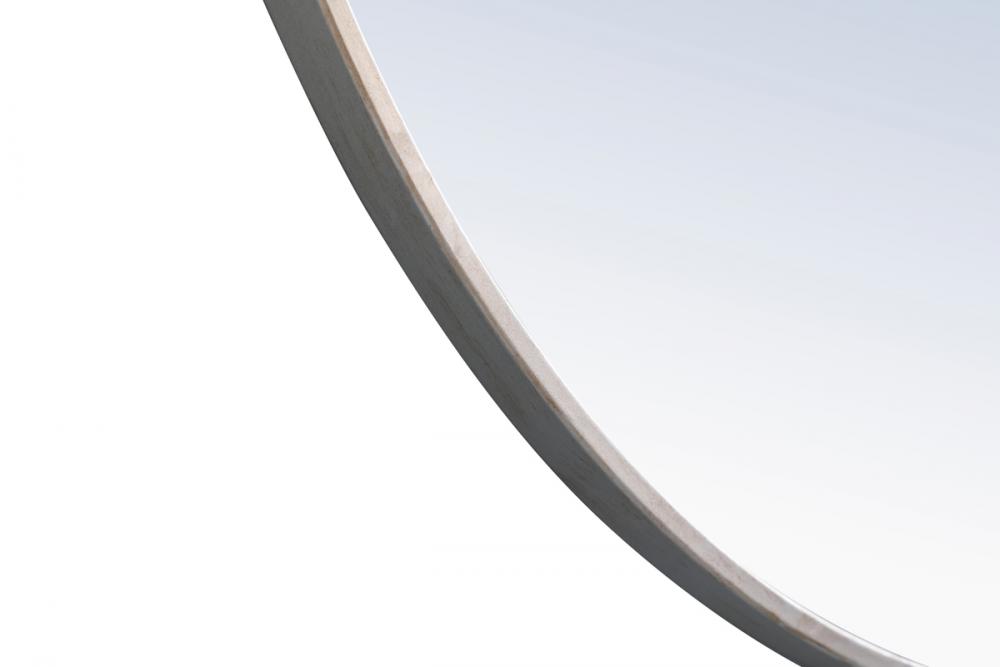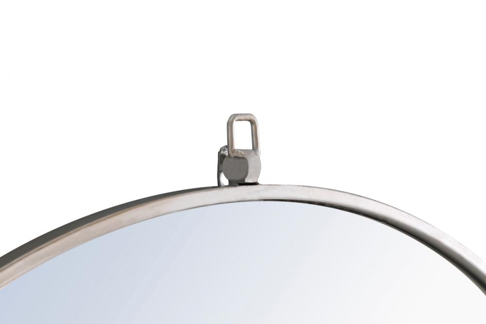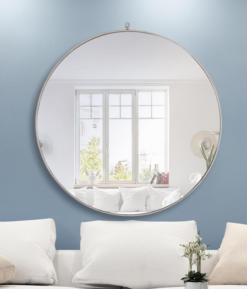 Enhance the appeal of your home or office with this contemporary mirror in silver finish, slightly antiqued, featuring a thin rounded metal edges in a deep profile, reflecting a minimalist's design and trendy styling. To ensure your home safety, we use a metal hanger ring that are securely welded to the back of the metal frame , which sit on top of the frame for easy hanging. We recommend using suitable heavy duty picture/mirror hooks, selecting the best type of fixing for the particular wall you wish to hang the mirror on, using the appropriate rawl plug if required. Measurement: D48.