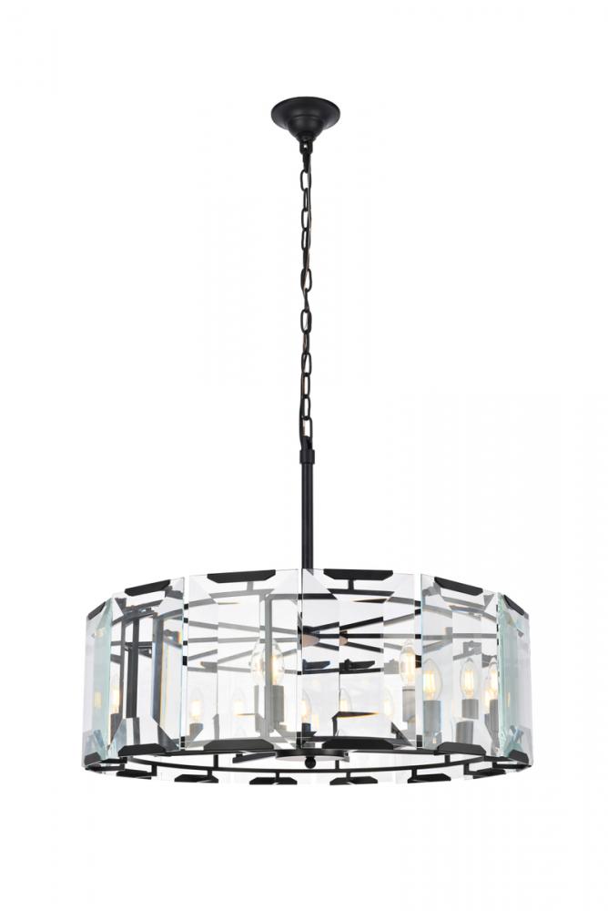 An eternity of reflection with exotic flair, Monaco chandeliers will bring illumination to your kitchen, office, or dining room, Brilliant emerald-cut glass panes capture and magnify the soft gleam of exposed bulbs. Rectangular or circular steel frames available in flat-black or golden-iron finishes give these lamps distinguished appeal.
