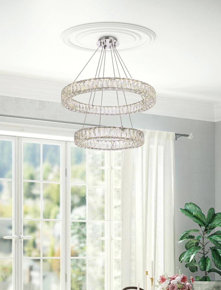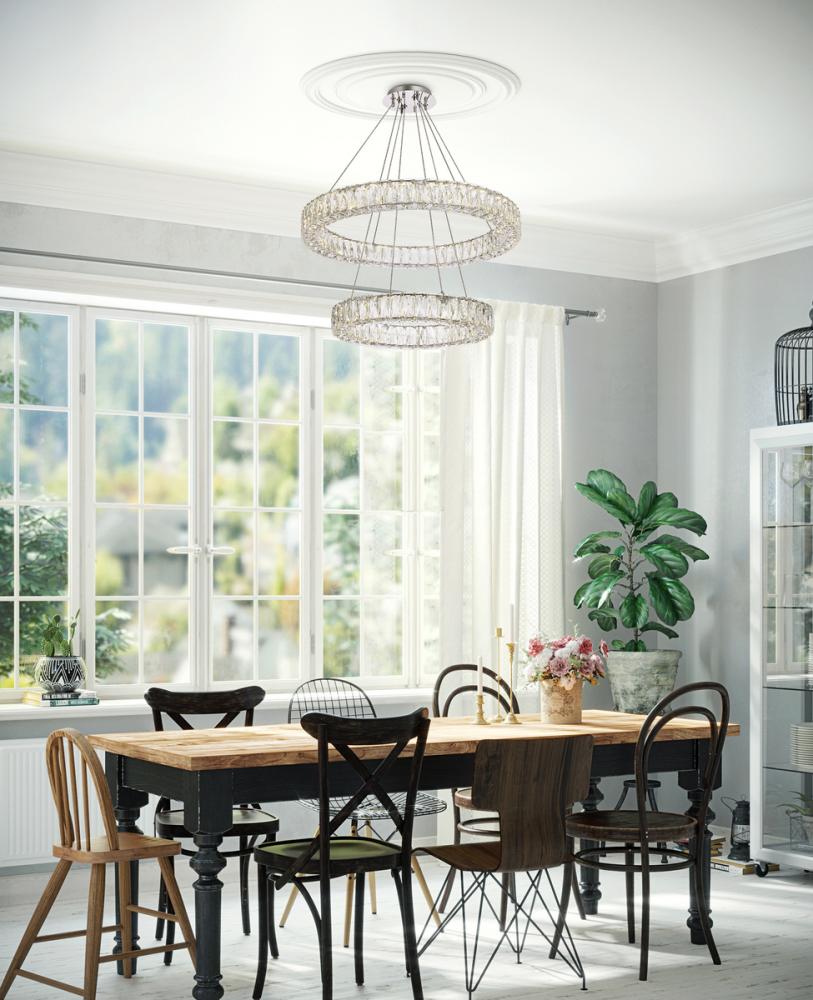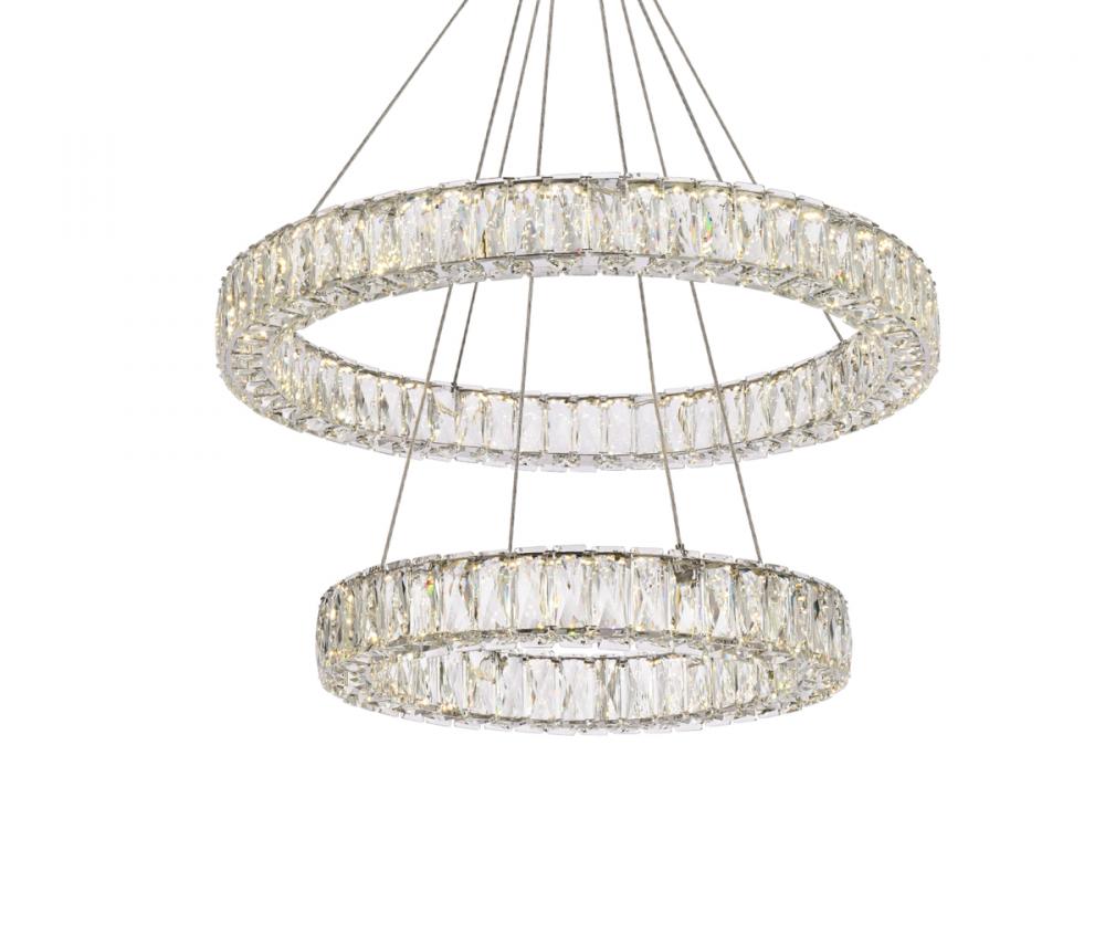 Monroe 28 inch LED double ring chandelier in chrome