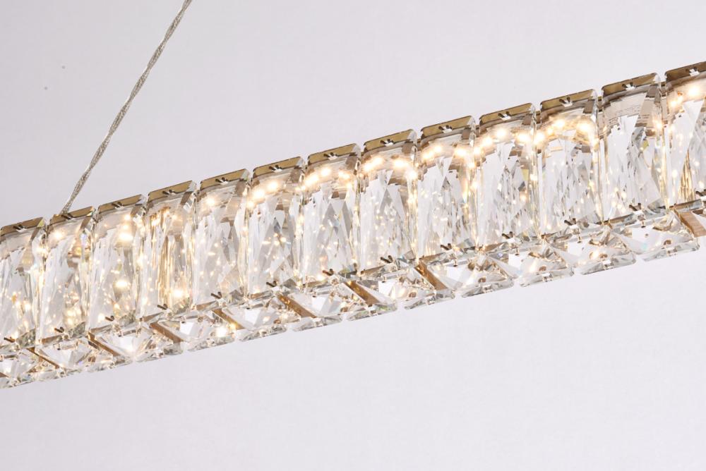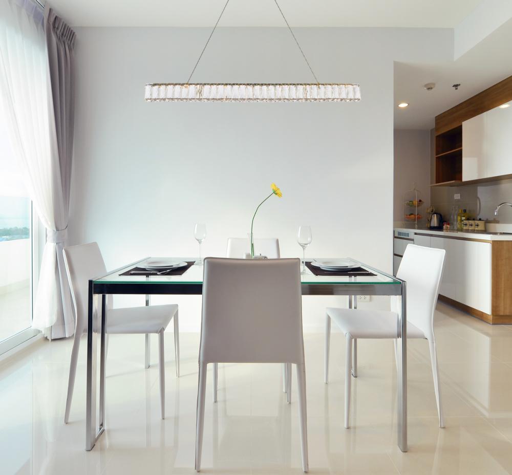 Diamonds are a girl’s best friend, and sparkling Monroe collection hanging fixtures take Marilyn’s famous lines to heart … for women and men alike. A minimal stainless-steel frame becomes dazzling when it is covered entirely with rectangular and square spectacularly faceted clear crystals. The oblong design hangs from almost invisible wires with brilliant integrated LED shining unseen from within. Stunning when placed in a dining room, kitchen, living room, or bedroom.