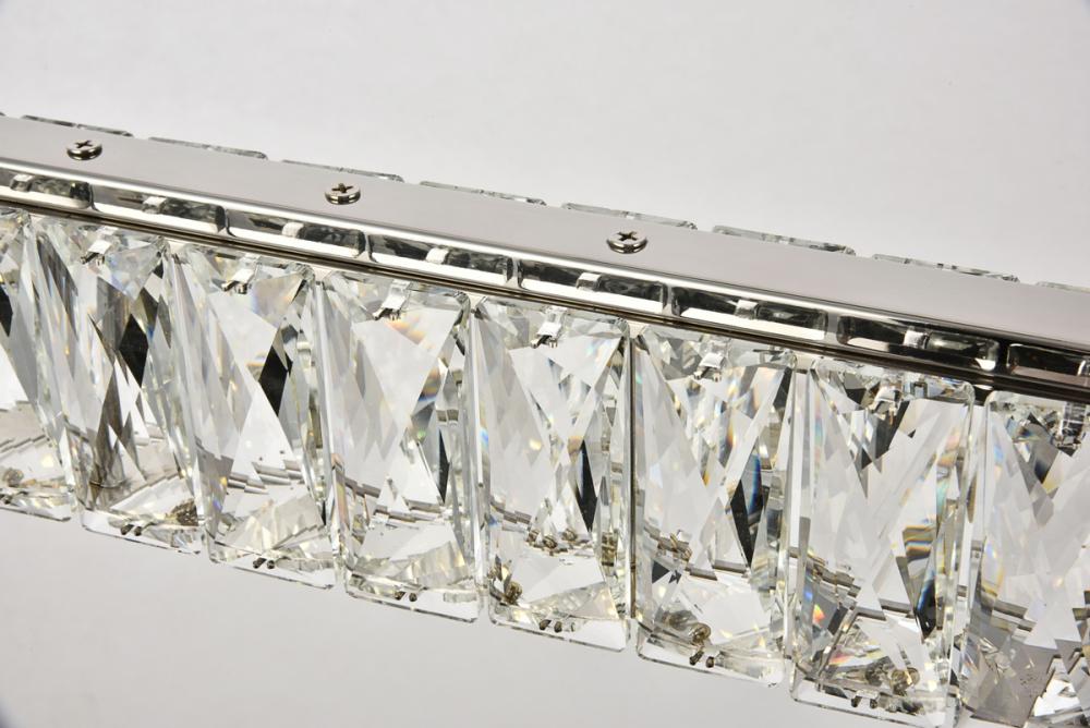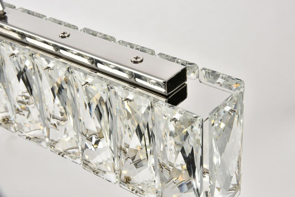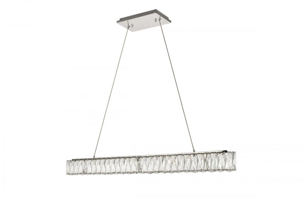 Diamonds are a girl’s best friend, and sparkling Monroe collection hanging fixtures take Marilyn’s famous lines to heart … for women and men alike. A minimal stainless-steel frame in a smooth chrome finish becomes dazzling when it is covered entirely with rectangular and square spectacularly faceted royal-cut clear crystals. The oblong design hangs from almost invisible wires with brilliant integrated LED shining unseen from within. Stunning when placed in a dining room, kitchen, living room, or bedroom.
