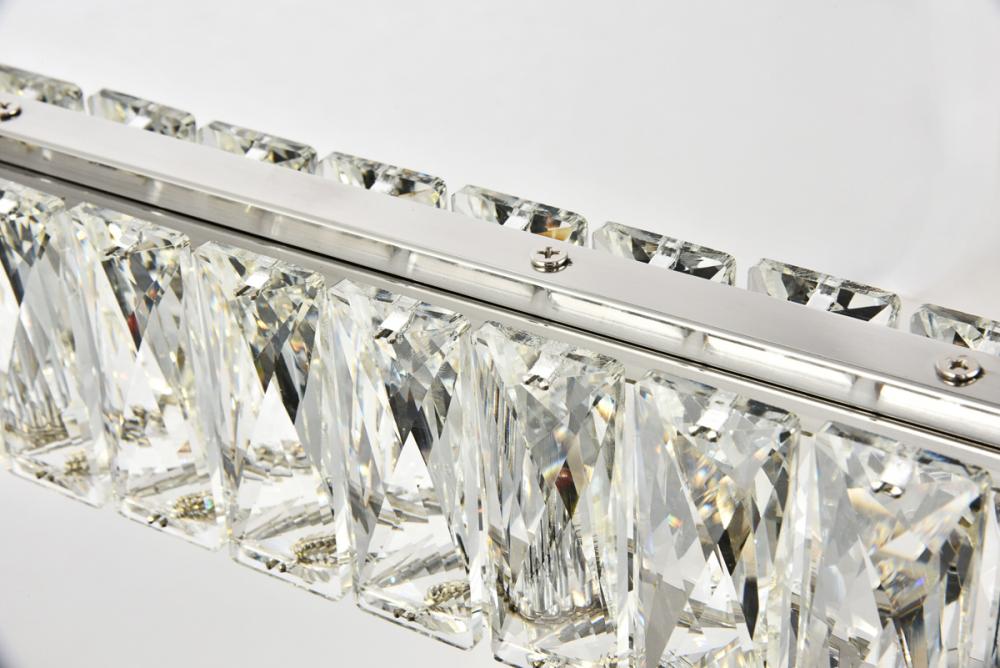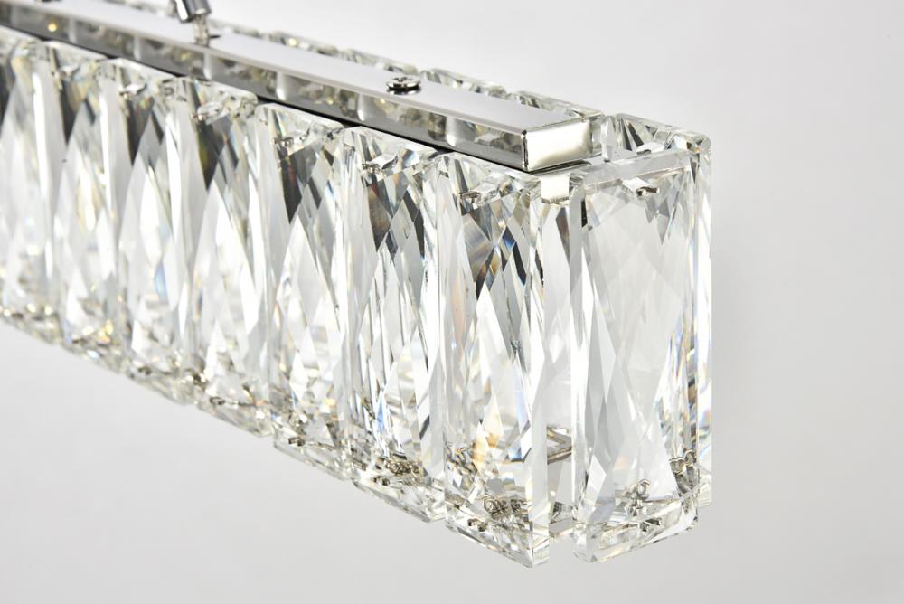 Diamonds are a girl’s best friend, and sparkling Monroe collection hanging fixtures take Marilyn’s famous lines to heart … for women and men alike. A minimal stainless-steel frame in a smooth chrome finish becomes dazzling when it is covered entirely with rectangular and square spectacularly faceted royal-cut clear crystals. The oblong design hangs from almost invisible wires with brilliant integrated LED shining unseen from within. Stunning when placed in a dining room, kitchen, living room, or bedroom.