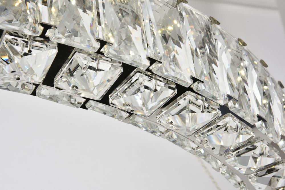 Diamonds are a girl’s best friend, and sparkling Monroe collection hanging fixtures take Marilyn’s famous lines to heart … for women and men alike. A minimal stainless-steel frame in a smooth chrome finish becomes dazzling when it is covered entirely with rectangular and square spectacularly faceted royal-cut clear crystals. The oblong design hangs from almost invisible wires with brilliant integrated LED shining unseen from within. Stunning when placed in a dining room, kitchen, living room, or bedroom.