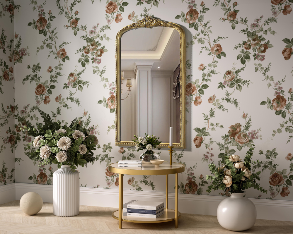 The mirror features a softly curved arch at the top, adding a refined and timeless touch to any space.