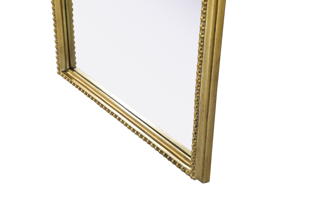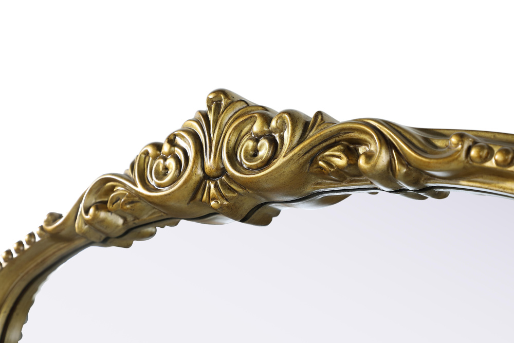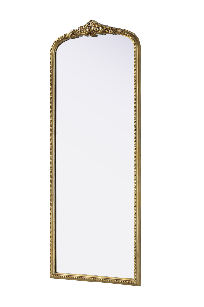 This full-length arched mirror brings a timeless, vintage-inspired charm to any space. The hand-painted antique brass finish and ornate crest detailing create a classic European look, perfect for traditional and French-inspired interiors. Whether leaned against the wall for a relaxed aesthetic or securely mounted using the metal inset hanger, this mirror offers versatility and refined style. Constructed from lightweight yet durable resin with an MDF backing board, it ensures long-lasting support and stability. Available in multiple sizes, this mirror is an ideal choice for bedrooms, entryways, and dressing areas, adding depth, light, and an elegant architectural presence to any room.