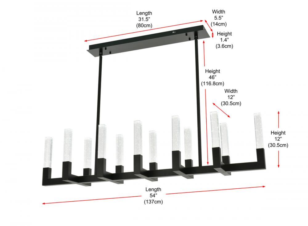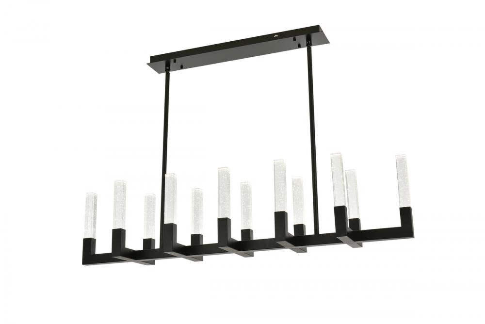 "Introducing the Noemi 51-inch pendant—an extraordinary blend of contemporary design and industrial elegance. with its chic linear silhouette, this pendant light adds a modern flair to your decor. The seeded glass crystal rods create a captivating play of light, enhancing your space with timeless elegance. Crafted from enduring iron and ETL certified for safety, the Noemi ensures a perfect balance of enduring quality and brilliant illumination with energy-efficient LED lights. Customize your ambiance effortlessly with the adjustable color temperature feature. Whether you seek a relaxed evening glow, a neutral and focused atmosphere, or a vibrant and energizing radiance, our chandelier provides the flexibility to cater to your preferences. Elevate your space with personalized illumination, creating the perfect setting for every moment. The Noemi 51-inch pendant is a statement of sophistication and functionality for your home."