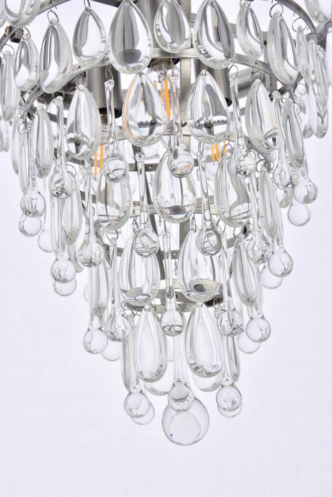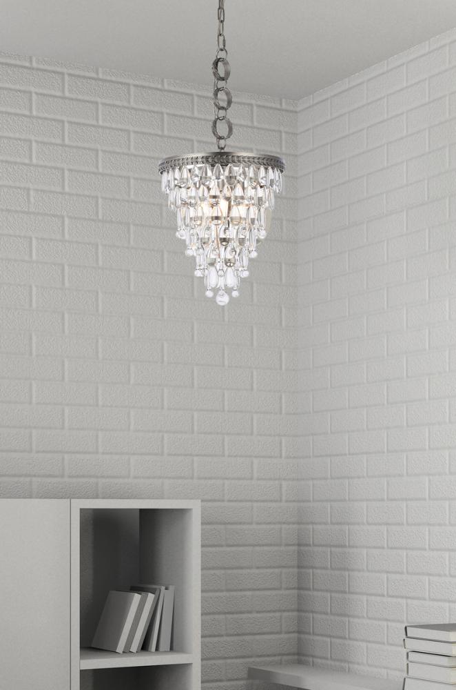 Tiers of royal-cut clear crystals reflect the soft glow of 3 candelabra bulbs