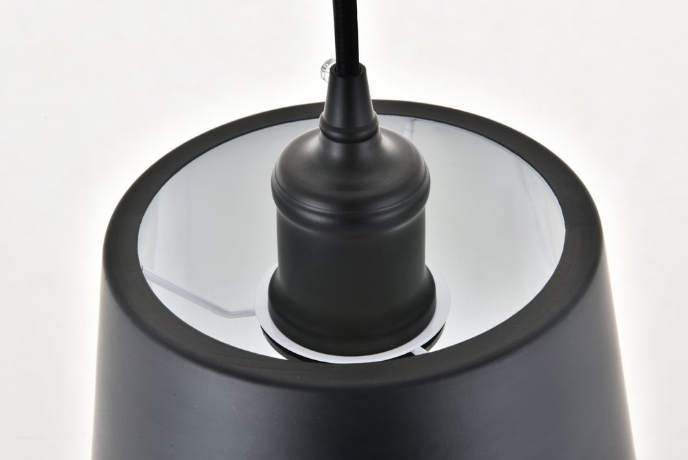 Drum shaped black finish metal shade with white finish interior