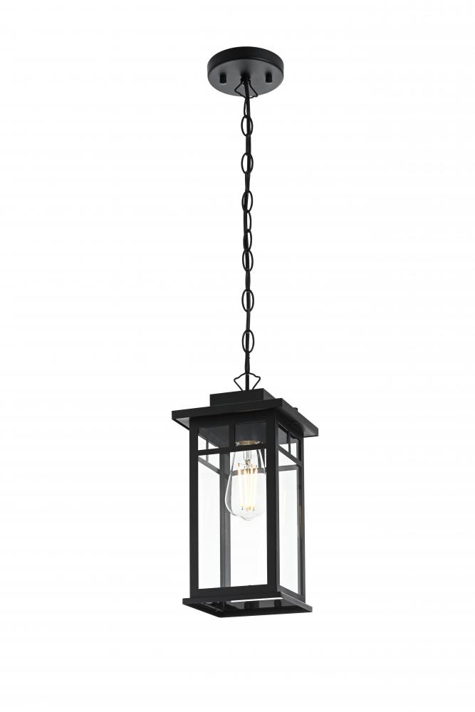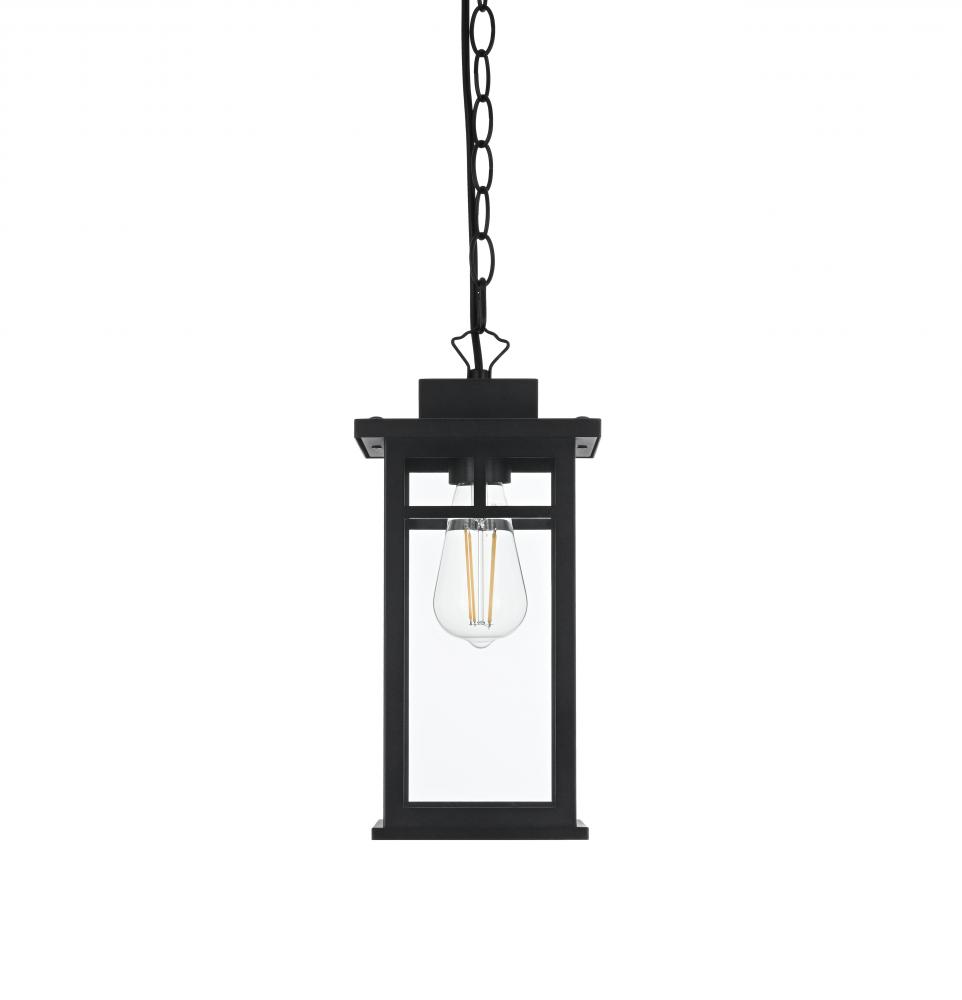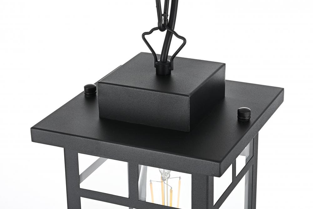 Bring classic craftsmanship and elegant simplicity to your outdoor spaces with this rectangular pendant light. with its craftsman-inspired design, featuring a sturdy black metal frame and clear glass panels, this pendant embodies timeless sophistication and modern functionality. The visible bulb design allows for maximum light output, while the matte black finish complements a range of outdoor aesthetics, from traditional to contemporary. Constructed with durable weather-resistant materials and certified for wet locations, this pendant is perfect for entryways, porches, or patios, ensuring long-lasting illumination. with its adjustable chain, you can easily customize the hanging height to perfectly suit your outdoor decor. Illuminate your home's exterior with this stylish pendant light, creating a welcoming atmosphere for your guests.