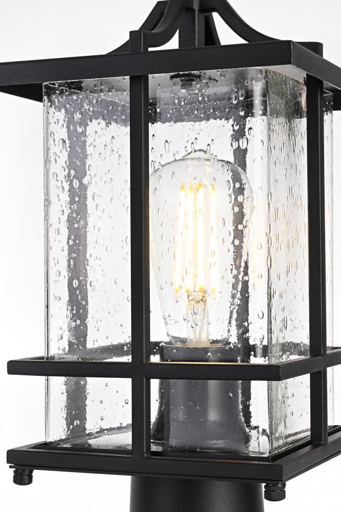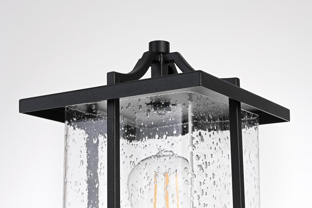 Crafted with an eye-catching blend of iron and clear seeded glass, this outdoor post light adds a modern yet timeless touch to any exterior wall, blending seamlessly with a variety of architectural styles.