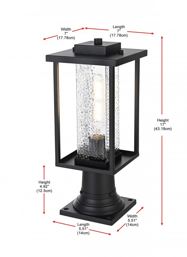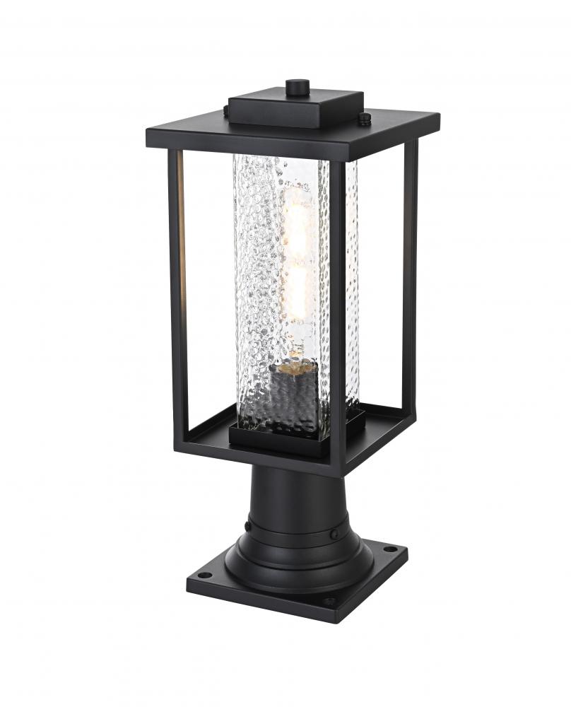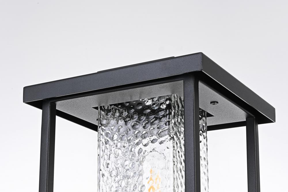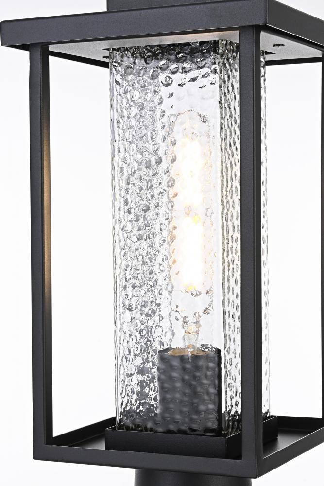 This outdoor post light combines durability with a touch of character, perfectly suited to elevate your exterior space. The iron frame adds strength and durability, while the hammered glass creates a beautiful, diffused lighting effect, enhancing the warm glow of the bulb. The sharp angles and clean lines of the iron frame provide a modern touch that blends seamlessly with the rustic textures of the glass, creating a versatile look that complements a wide range of styles.
