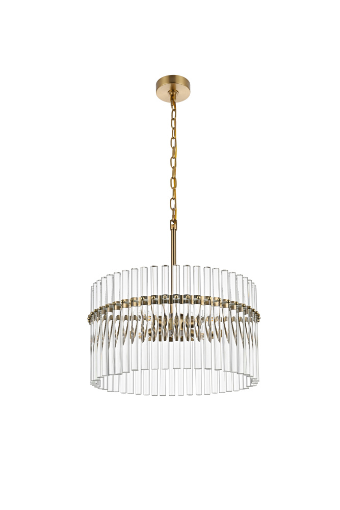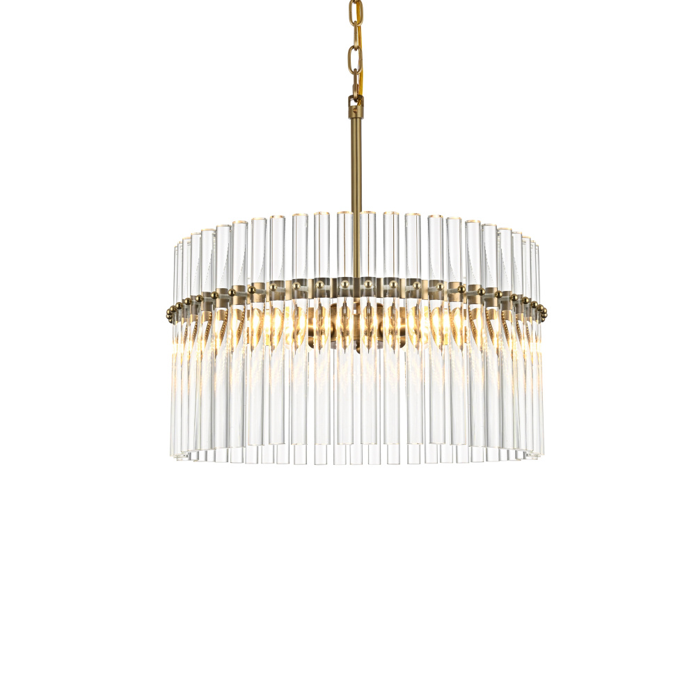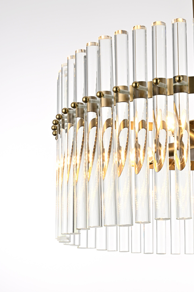 A precise arrangement of clear cylindrical glass rods creates a symmetrical and harmonious lighting effect, ensuring uniform brilliance from every angle.