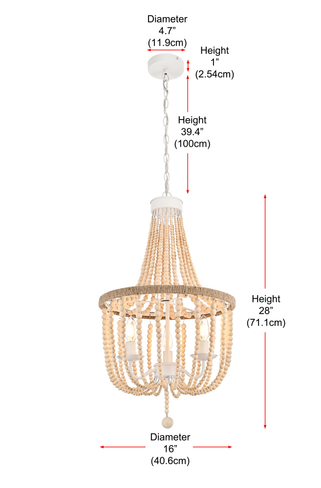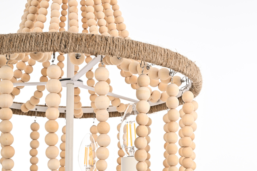 Elevate your space with this masterfully crafted pendant that artfully blends rustic charm with refined elegance. The dramatic cascading strands of wooden beads create a mesmerizing display of light and shadow, while the rope-wrapped crown adds an authentic touch of artisanal craftsmanship. Each piece showcases the natural beauty of carefully selected wooden beads, arranged in graceful loops that draw the eye upward and create a sense of gentle movement. The substantial iron framework ensures stability while maintaining an airy, elegant presence. Perfect for dining rooms, entryways, or living spaces, this versatile fixture adapts beautifully to various ceiling heights through its adjustable chain system. The three-light design provides ample illumination while creating enchanting patterns through the beaded strands. Whether styled in sophisticated antique white or warm natural beige, this pendant makes a striking statement while maintaining an organic, approachable presence. The thoughtful blend of materials and textures creates a piece that feels both timeless and fresh, making it an ideal choice for designers and homeowners seeking to create a space with both character and refinement.